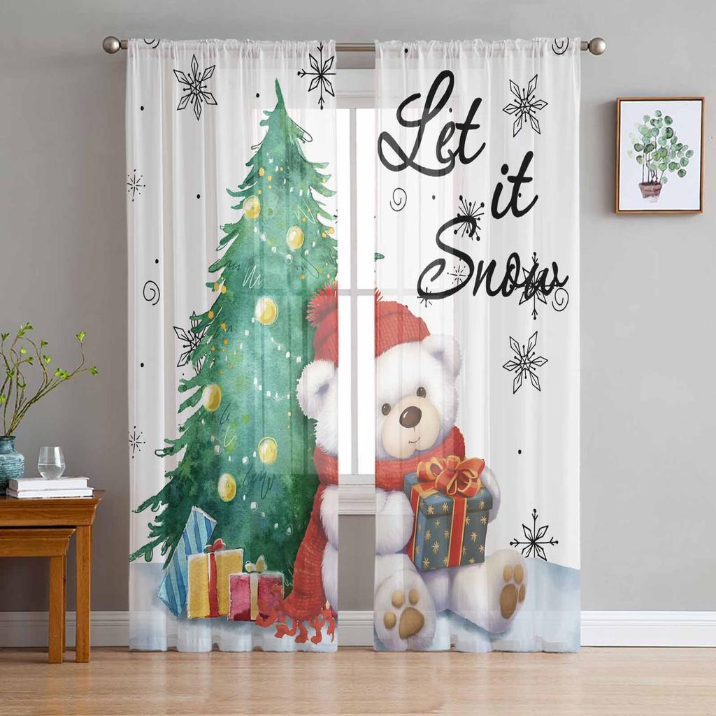 Christmas Snowflakes Retro Koala Curtains For Living Room Bedroom Home Decoration Window Voile Tulle Curtain Drapes