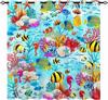 Ocean Animal Landscape Window Curtain, Coral with Nautical Map, Thin, Octopus, Living Room, Bedroom Decor