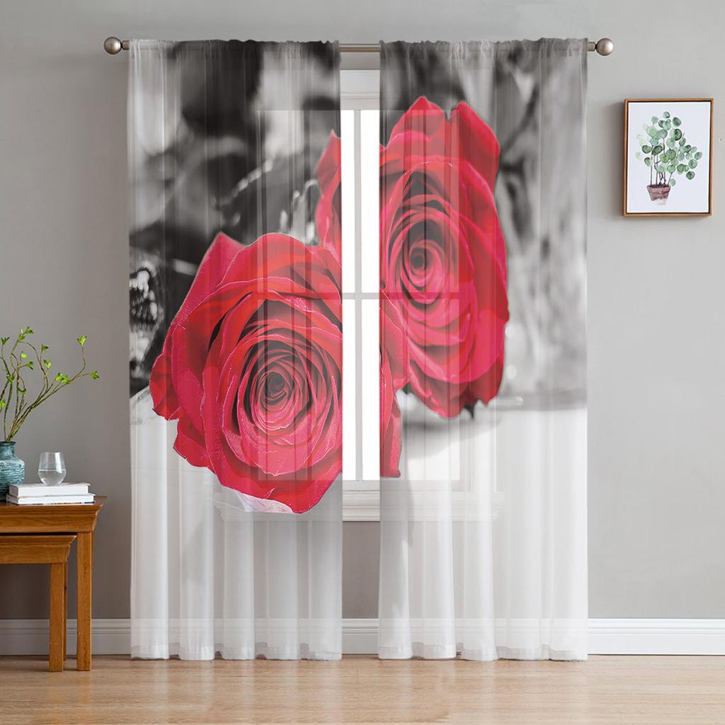 Red Rose Flower Modern Curtains For Living Room Transparent Tulle Curtains Window Sheer For The Bedroom Accessories Decor