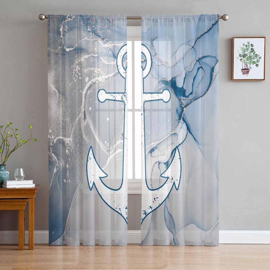 Retro Abstract Paint Boat Anchor Pink Blue Fluid Art Sheer Curtains for Kids Living Room Voile Window Curtains Tulle Drapes