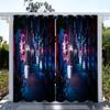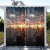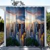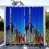 1pc Outdoor Waterproof Oil-proof Curtains,Modern Sunshade City Light Night View River Building Print Curtain For Living Room