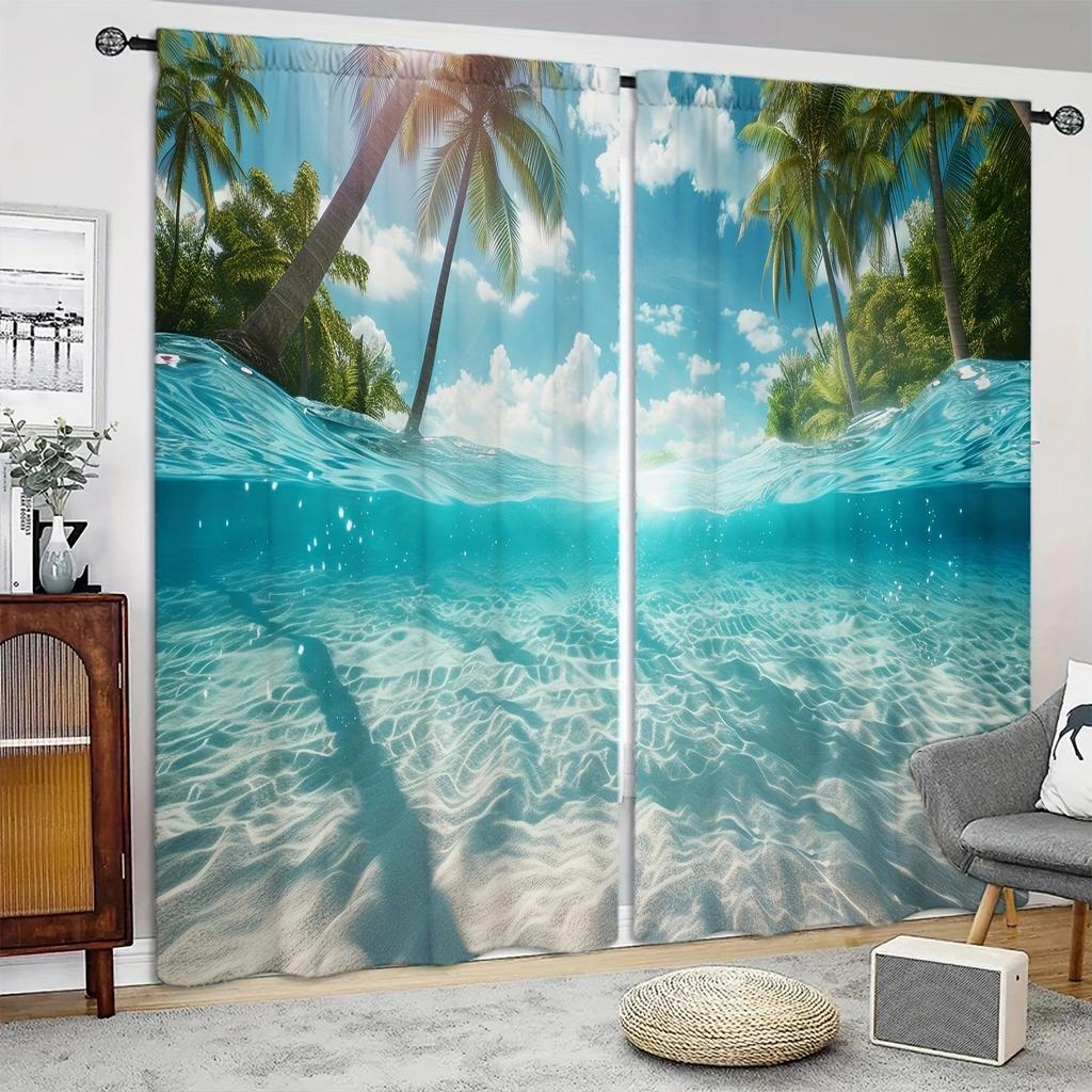 Ocean Scenery Printed Curtain for Home Decor - Rod Pocket Window Treatment for Bedroom, Kitchen, Living Room