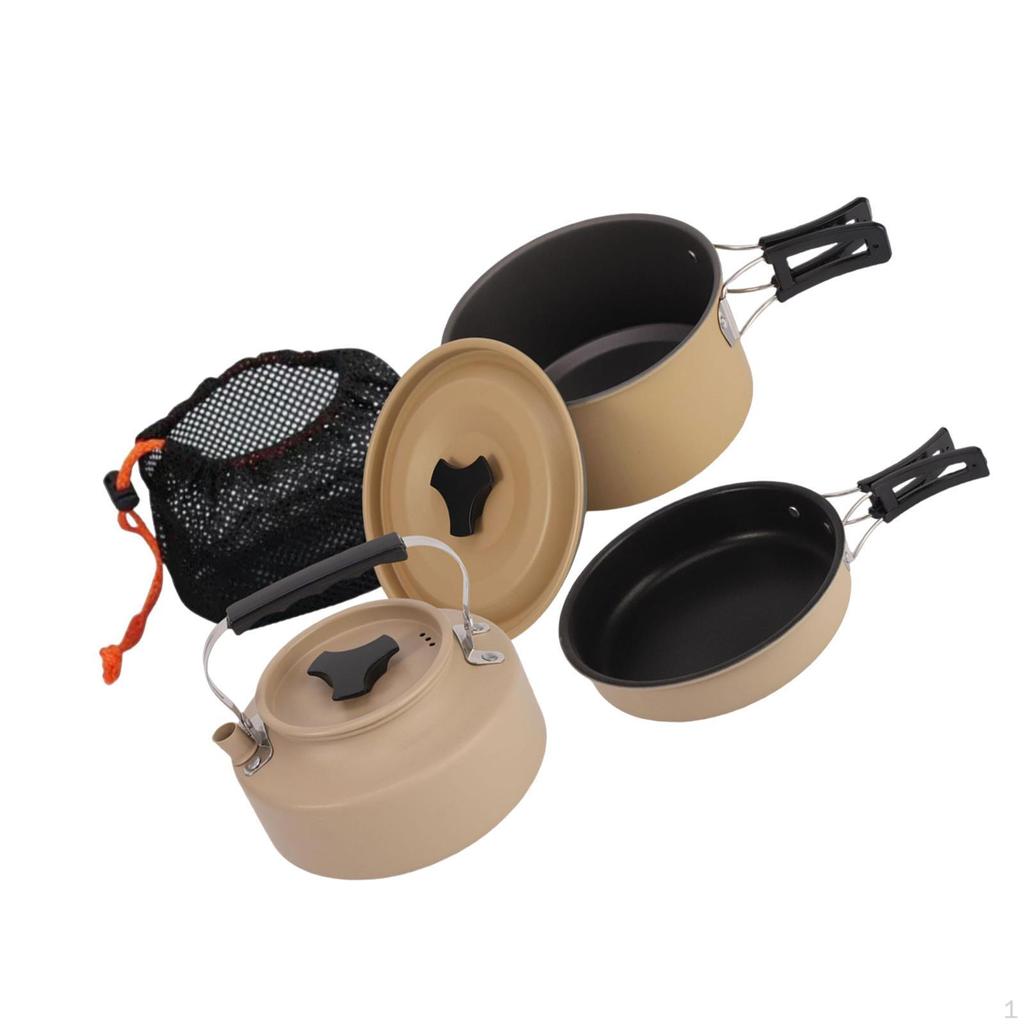 - 【Product Size & Package List】: Kettle 1.1L, 15cmx8cm/5.91inchx3.15inch; Medium Cooking Pot 1L, 17cmx10cm/6.69inchx3.94inch; Medium Frying Pan 0.5L, 17.7cmx3.7cm/6.97inchx1.46inch; Package includes 1 medium cooking pot, 1 medium frying pan, 1 kettle(1.1 L), 1 storage bag