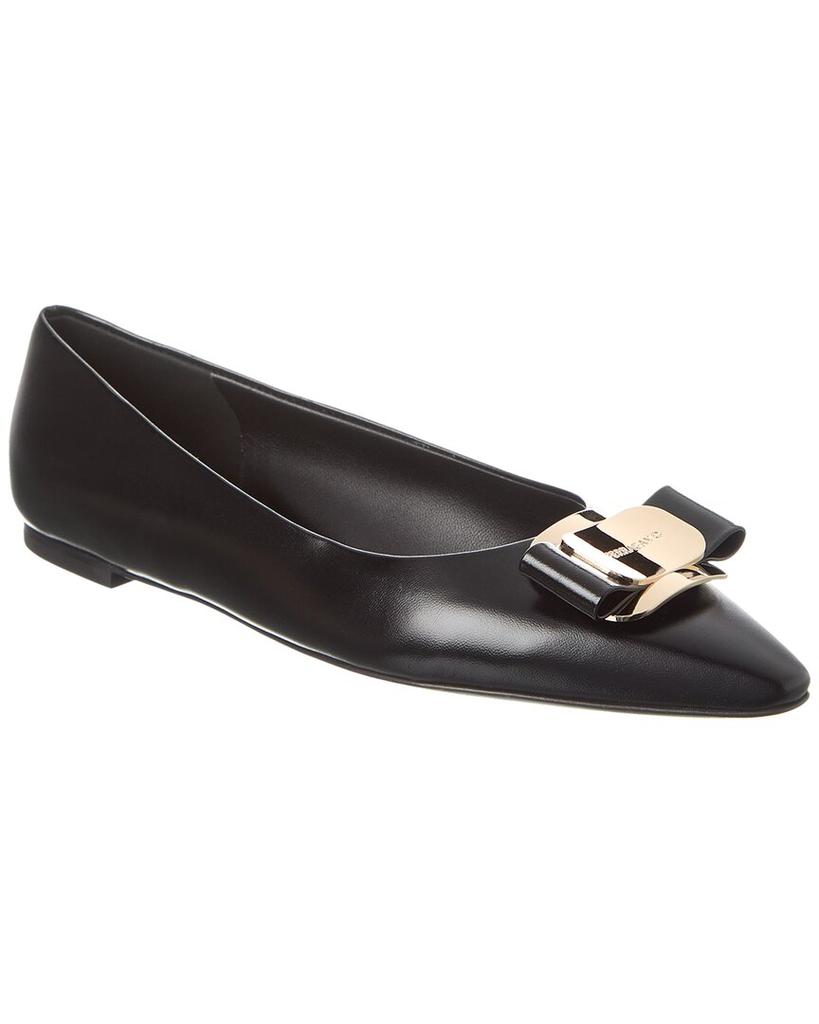 Elevate your footwear collection with the Salvatore Ferragamo Ferragamo Zea Leather Flat. Expertly crafted in Italy, these black leather flats feature silver-tone hardware and a signature Vara bow accent for a touch of elegance. The lightly padded leather insole ensures all-day comfort, while the smooth leather sole provides light traction. Please note that this style is wide sizing (7C) and all measurements are approximate. Each pair is 100% genuine, sourced from trusted independent suppliers to guarantee authenticity. Add a touch of luxury to your wardrobe with these timeless flats from Salvatore Ferragamo.