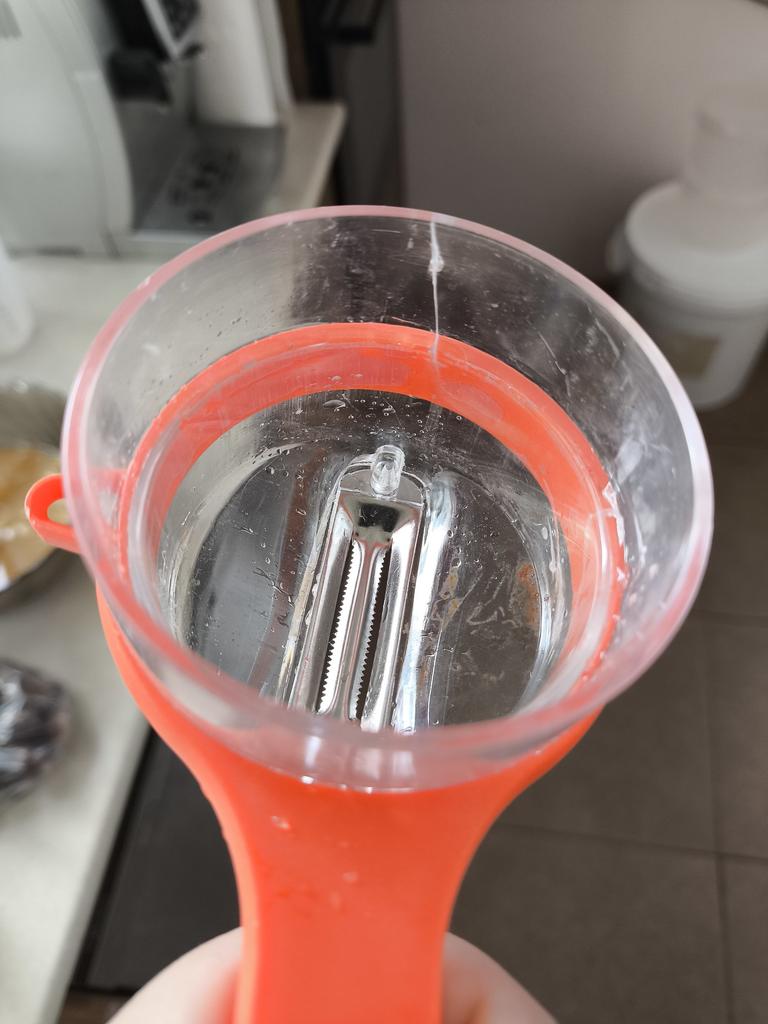 Not a very convenient blade - maybe I'm not used to it yet. The skins fall into the container - convenient