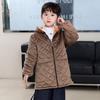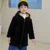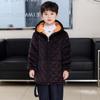 Boys Children's Plus Velvet Thickened Mid-length Hooded Cotton Overalls Fashionable and Warm To Wear Outside