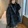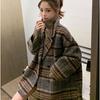 Coffee Color Suit Jacket Women's Autumn and Winter Fashion Plaid Tweed Mid-length Woolen Coat