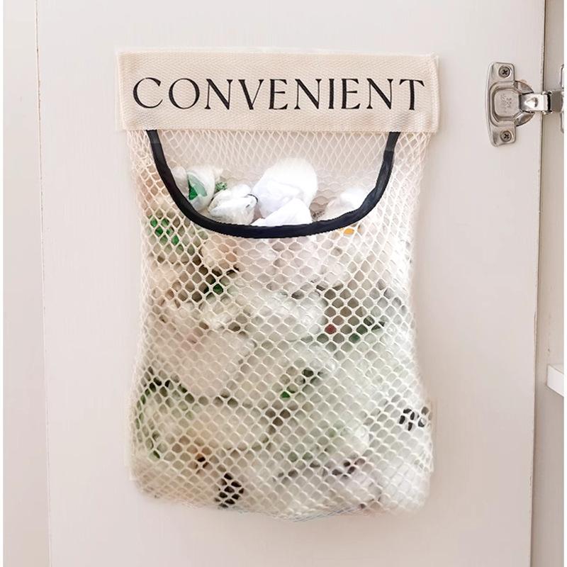 Kitchen Trash Bag Storage Bag Velcro Mesh Bag Household Clutter Mesh Garbage Bag Wall Hanging Storage Bag