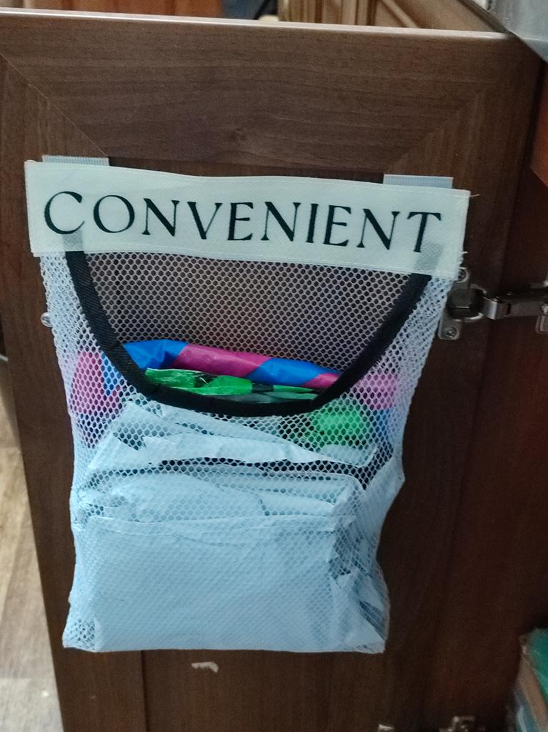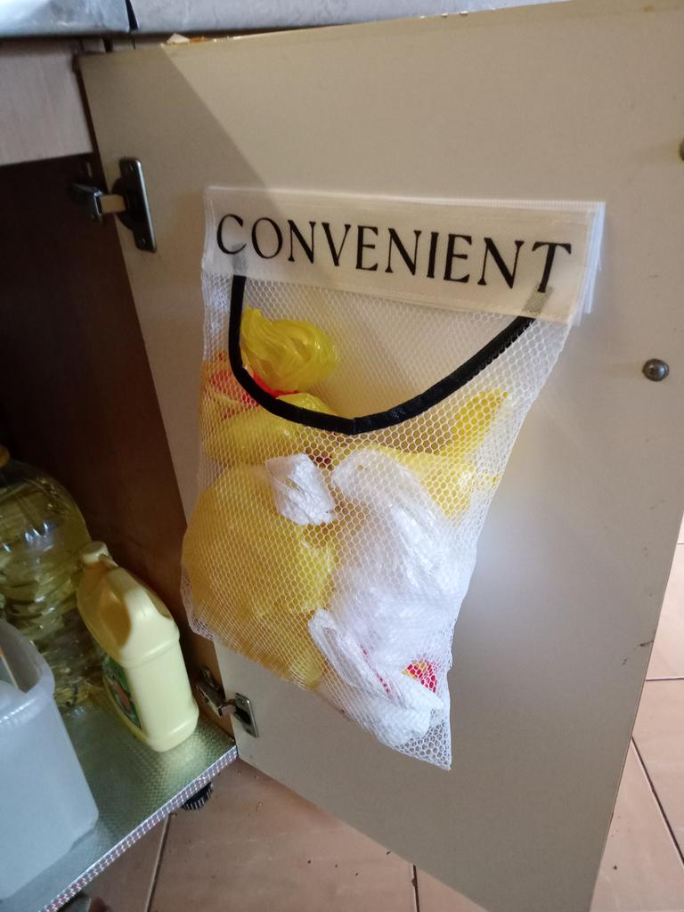 The mesh bag has been received. I attached it to the door of the kitchen cabinet for trash bags. Convenient.