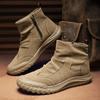 Fashion Men's Boots High Cut Workwear Shoes Autumn 2025 Flat Zipper Pleated Non Slip Comfort Thick Soled Wear-resistant Fashion Boots