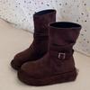 Platform Women Suede Ankle Boots Retro Mid Heels Shoes New Brand 2025 Trend Designer Classic Buckle Gladiator Winter Botas Mujer