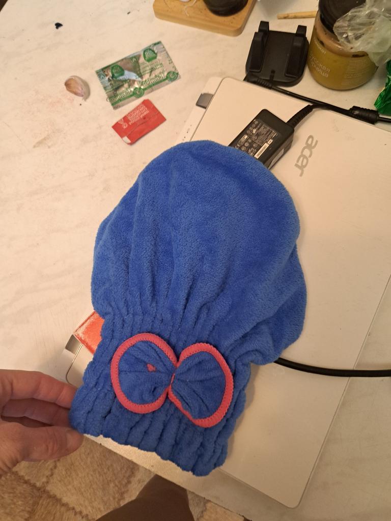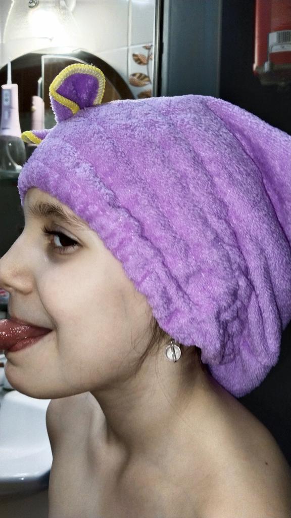 Soft, pleasant to the touch cap after a bath. Deep - for an adult, but in head circumference it will fit a child.
