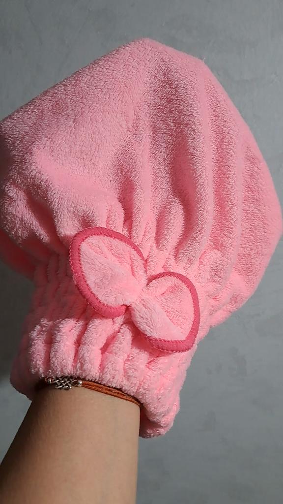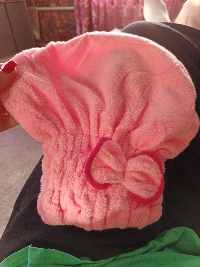 Convenient turban towel for hair. Soft comfortable microfiber, absorbs moisture, elastic band does not press on the head. Delicate pink color šø Other colors available)