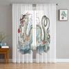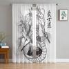 Chinese Style Black Dragon Blue Tulle Sheer Window Curtains for Living Room the Bedroom Modern Voile Organza Curtains Drapes