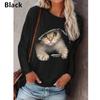 Fashionable Women's Round Neck Long Sleeve T-shirt Trendy Autumn/winter Cat