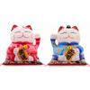 2 Pieces Couple Maneki Neko Ornament Ceramic Lucky Cat Home Decoration Gift Feng Shui Piggy Bank Statue (1 Boy + 1 Girl) 14cm