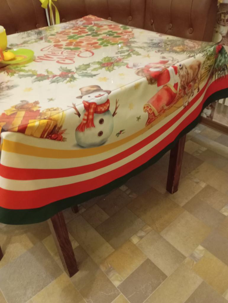 Christmas Red Round TableCloth Christmas Table Decor Santa Claus Snowman Pattern Reusable Tablecloth Xmas Decoration