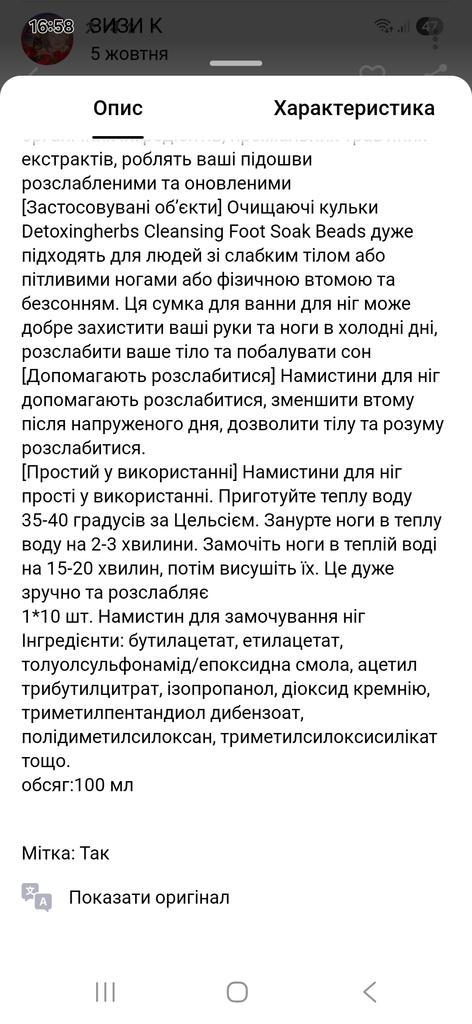 Pads for soaking feet from fatigue. Unfortunately, I haven't used them yet. I recommend them.