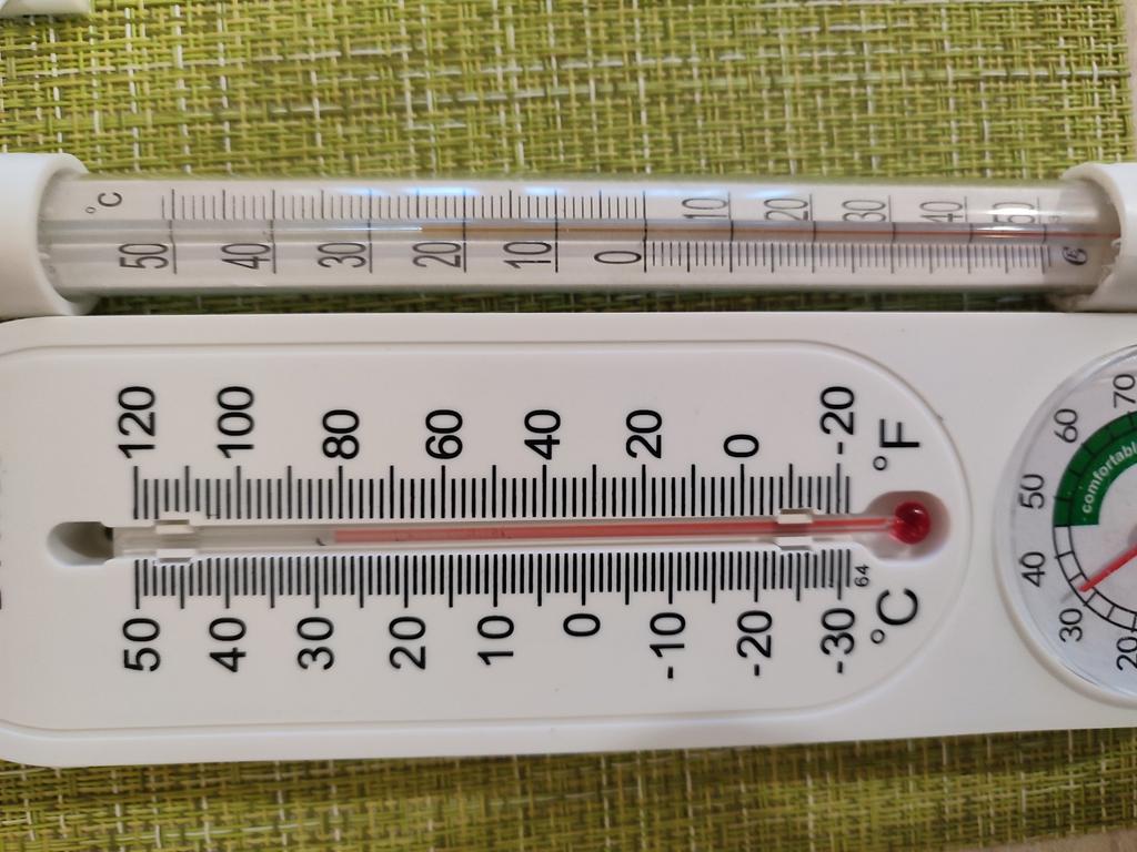 Thermometer-hygrometer, shows +-, the temperature value can be adjusted - the alcohol tube is movable. For the garage, it's just right.