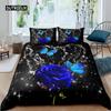 Rose Duvet Cover Set Women Chic Purple Floral Print Bedding Set Romantic Flowers Glitter King Size Comforter Cover for Couples