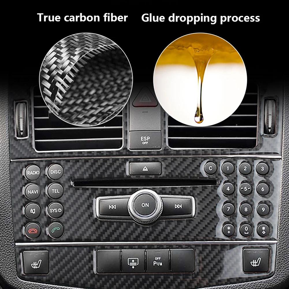 Car Center Console Air Conditioner CD Panel Cover Trim For Mercedes Benz C Class W204 C200 C260 C300 C180 2007-10 Carbon Fiber
