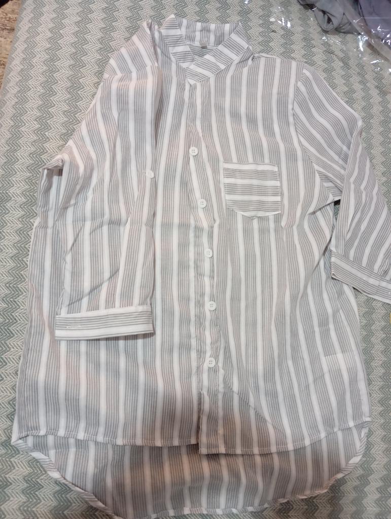Spring Women's Blouses & Shirts Casual V-neck Striped Seven Quarter Sleeve Women's Shirt
