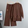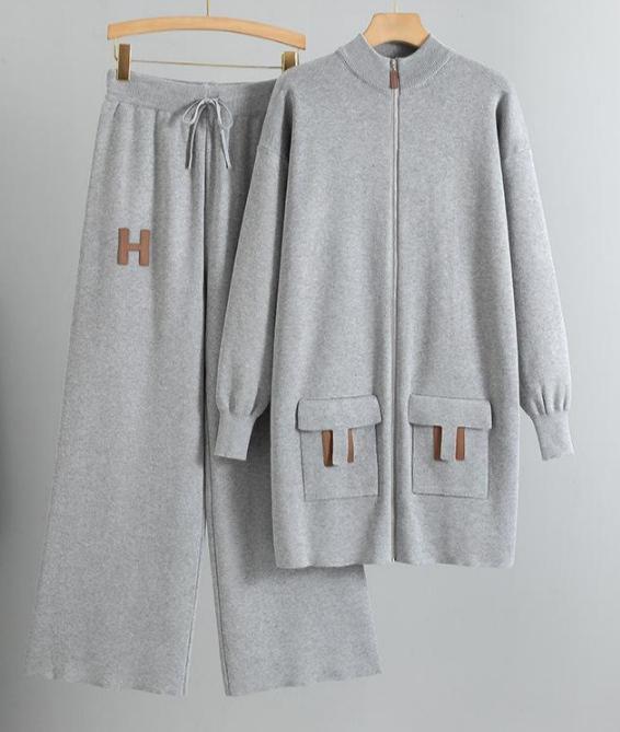 Women's Plus Size Temperament Simple Casual Small Fragrant Wind Long Knit Cardigan Pants Two Piece Set