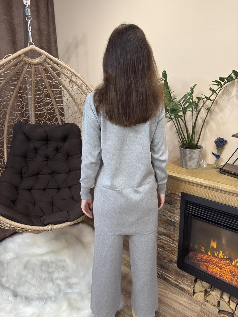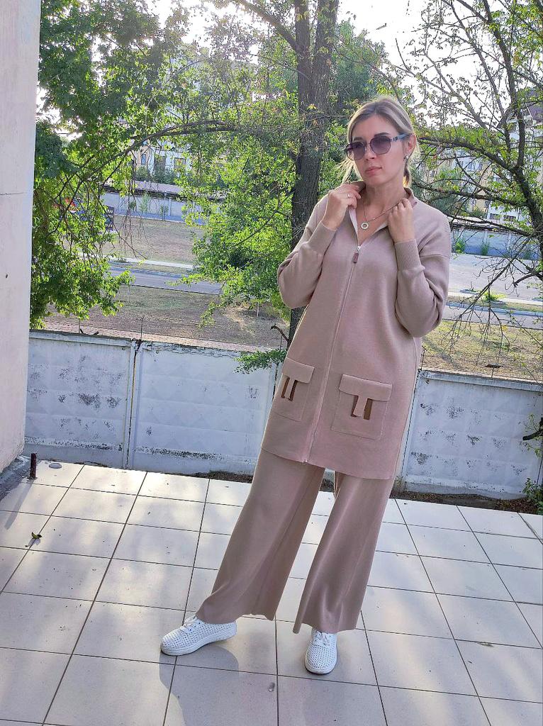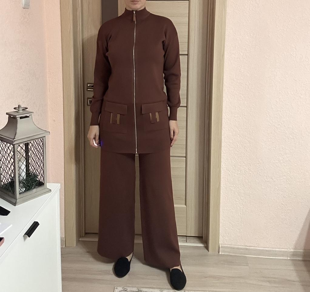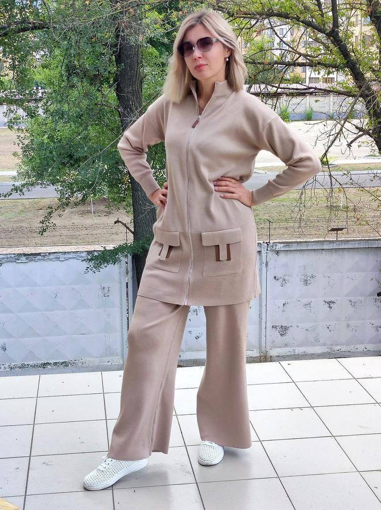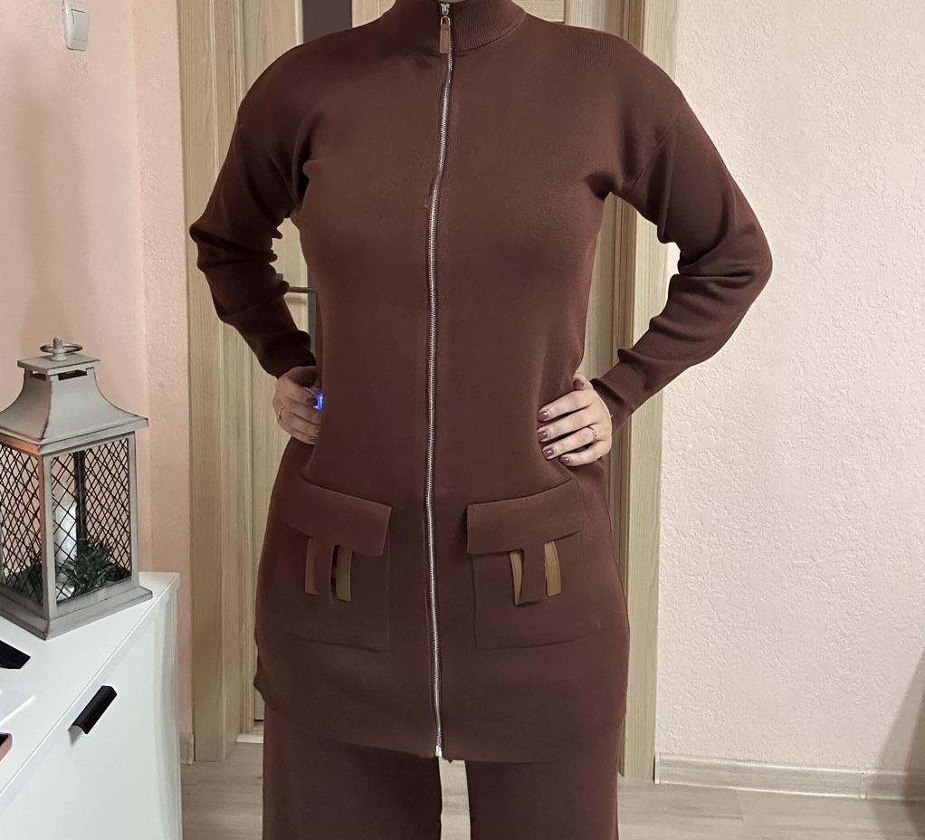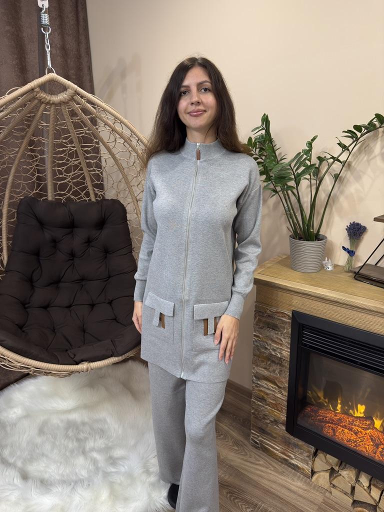 I present to your attention a women's knitted suit that is ideal for autumn and winter walks. This trouser set with grey trousers, made of knitted material, will provide comfort and coziness on cool days. Women and girls will appreciate the stylish look created by this unique knitwear set. The comfortable model with wide trousers ensures freedom of movement. It is complemented by an elongated top with a zipper collar. In such clothes, it is easy to look stylish thanks to interesting details. The long sleeve provides extra warmth, making it ideal for the demi-season. You will love the versatility of this outfit! Use it as a basic wardrobe element to create an everyday look or wear it for walks and travels.. Cool suit from the favorite brand CANVAUS 💖