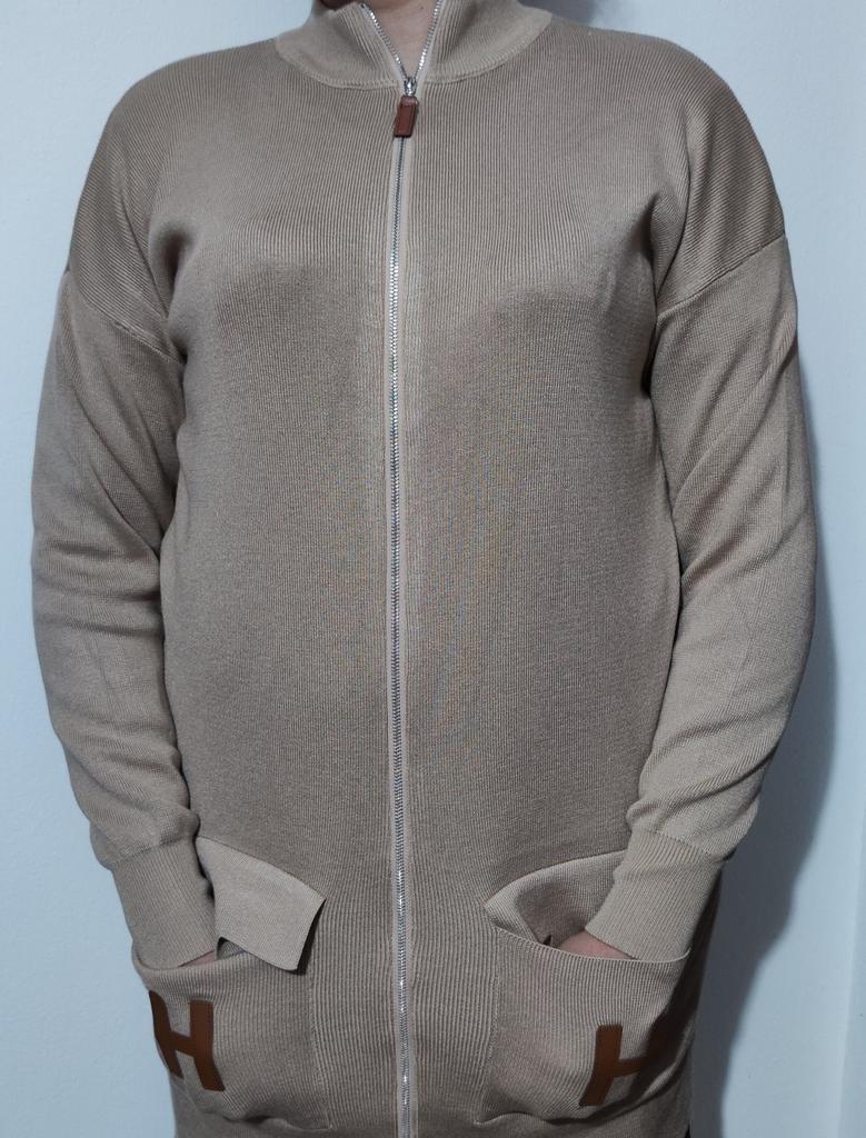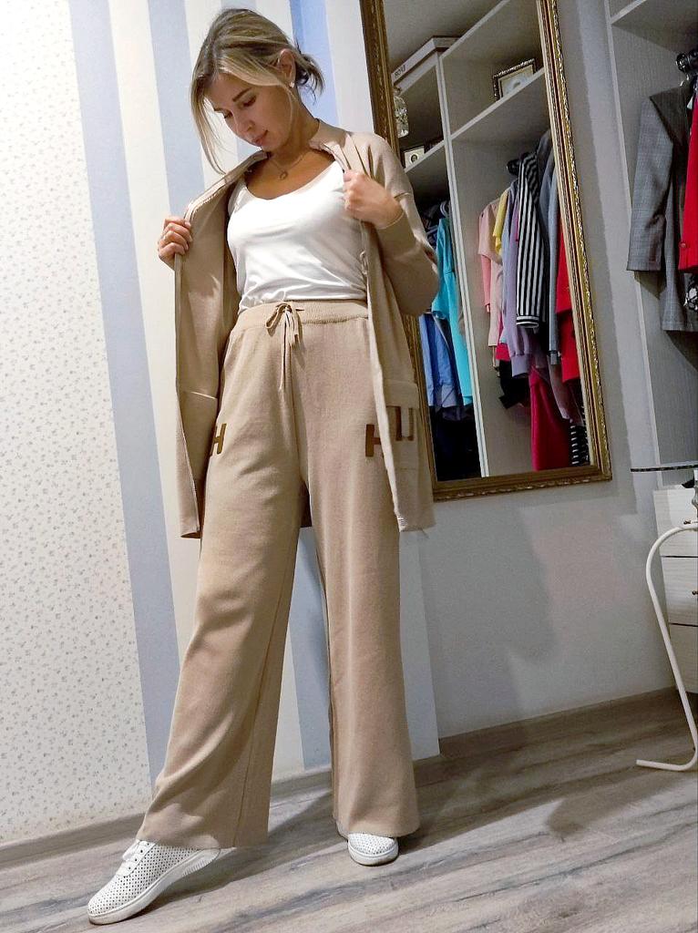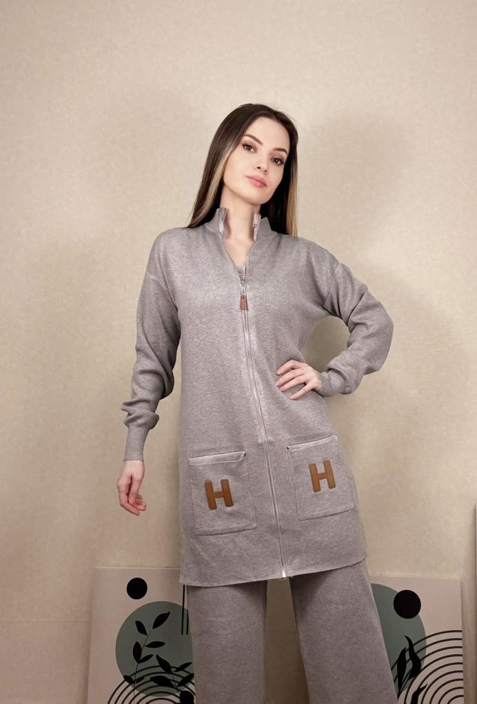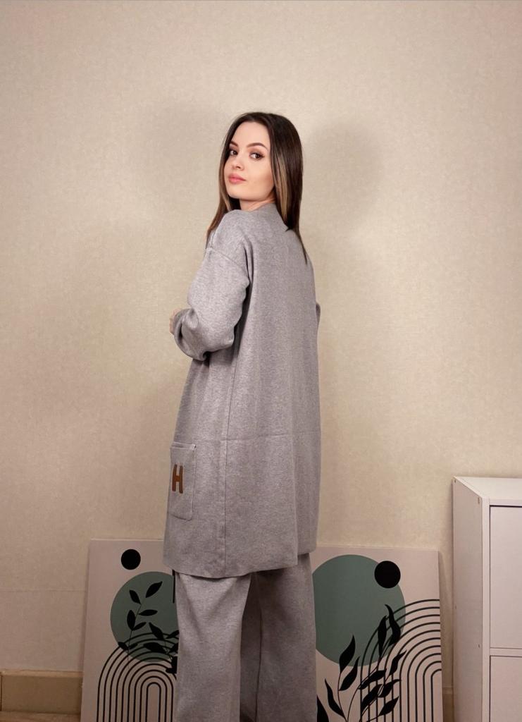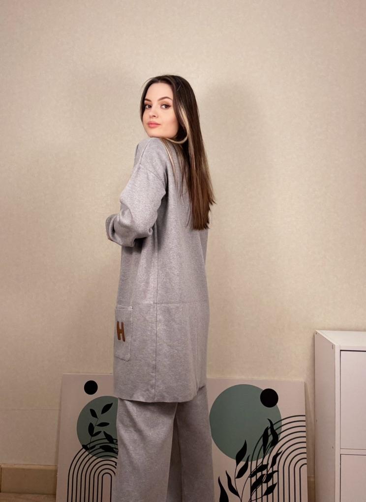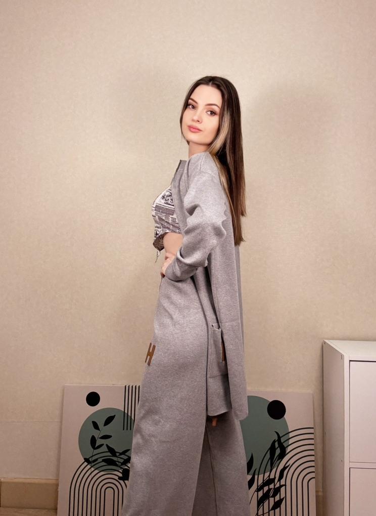 I present to your attention a women's knitted suit that is ideal for autumn and winter walks. This trouser set with grey trousers, made of knitted material, will provide comfort and coziness on cool days. Women and girls will appreciate the stylish look created by this unique knitwear set. The comfortable model with wide trousers ensures freedom of movement. It is complemented by an elongated top with a zipper collar. In such clothes, it is easy to look stylish thanks to interesting details. The long sleeve provides extra warmth, making it ideal for the demi-season. You will love the versatility of this outfit! Use it as a basic wardrobe element to create an everyday look or wear it for walks and travels.. Cool suit from the favorite brand CANVAUS 💖