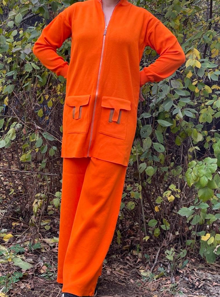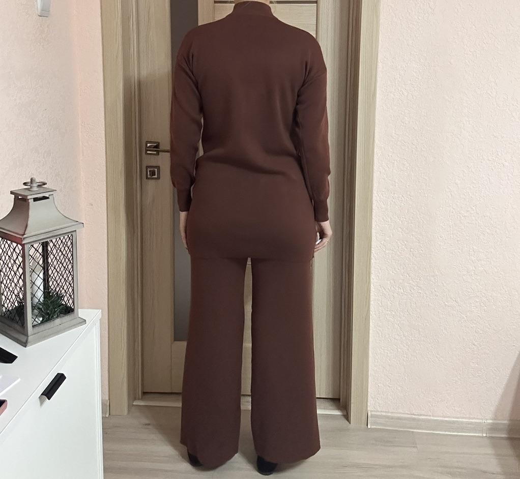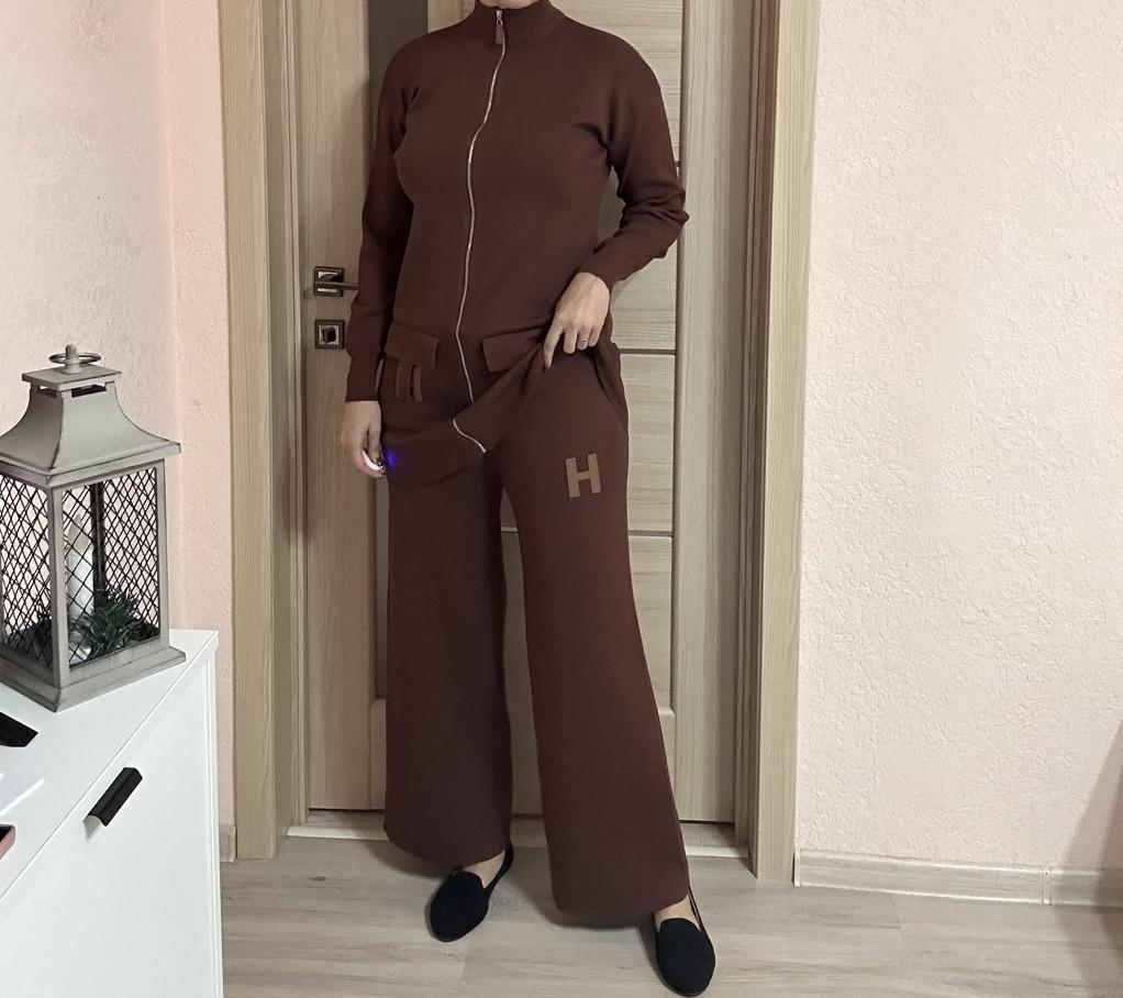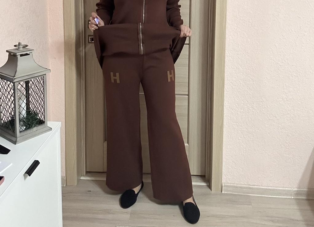 Knitted suit for women Extra warm knitted suit, shirt and trousers. The pants with a wide elastic waistband are flared, the shirt with a round neck and long sleeves has pockets and the letter H Suitable for the autumn-winter season. Available in colors black, khaki, orange, gray, dark brown, apricot The suit is of particularly high quality and gives a feeling of luxury Highly recommended to buy! The product arrived to me with fast and secure delivery 📦