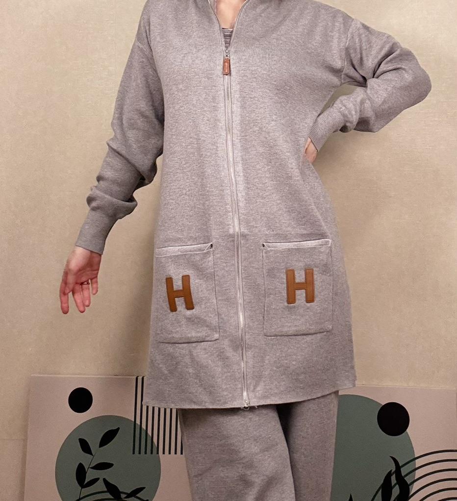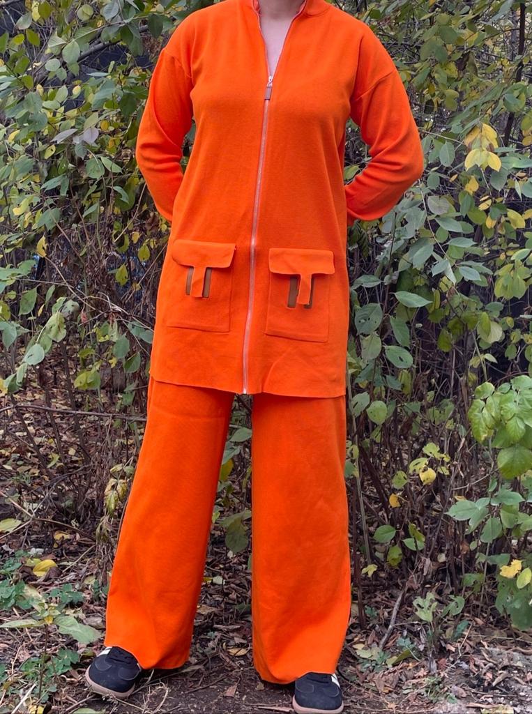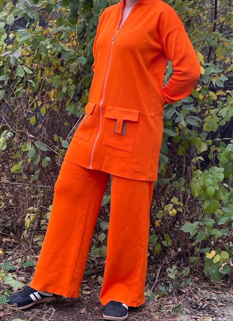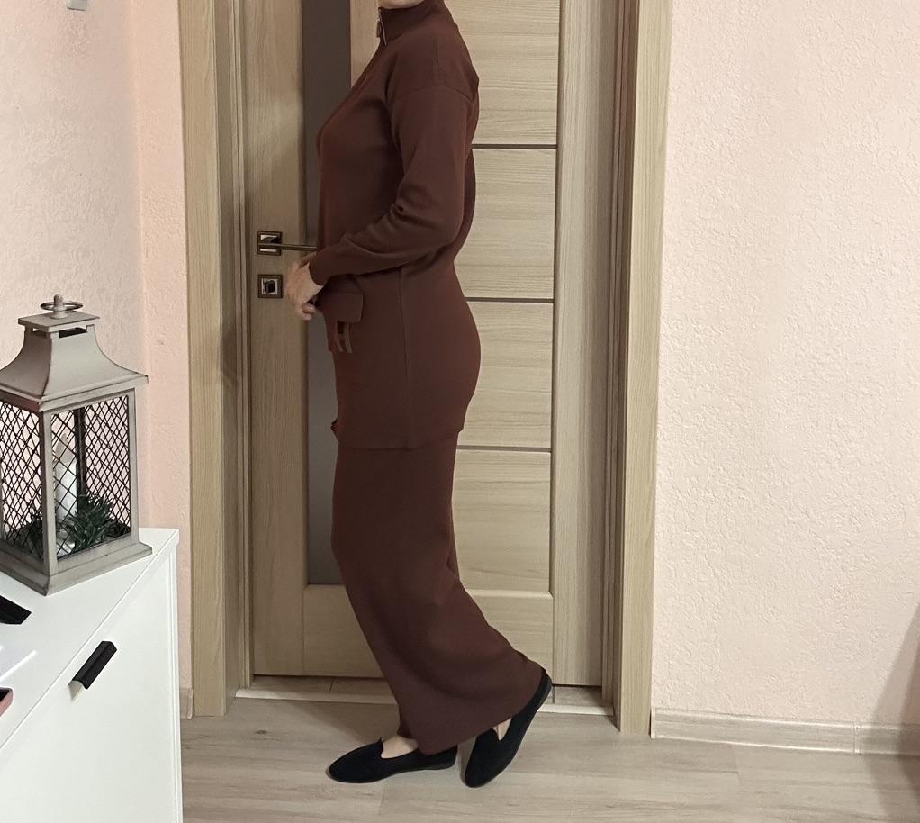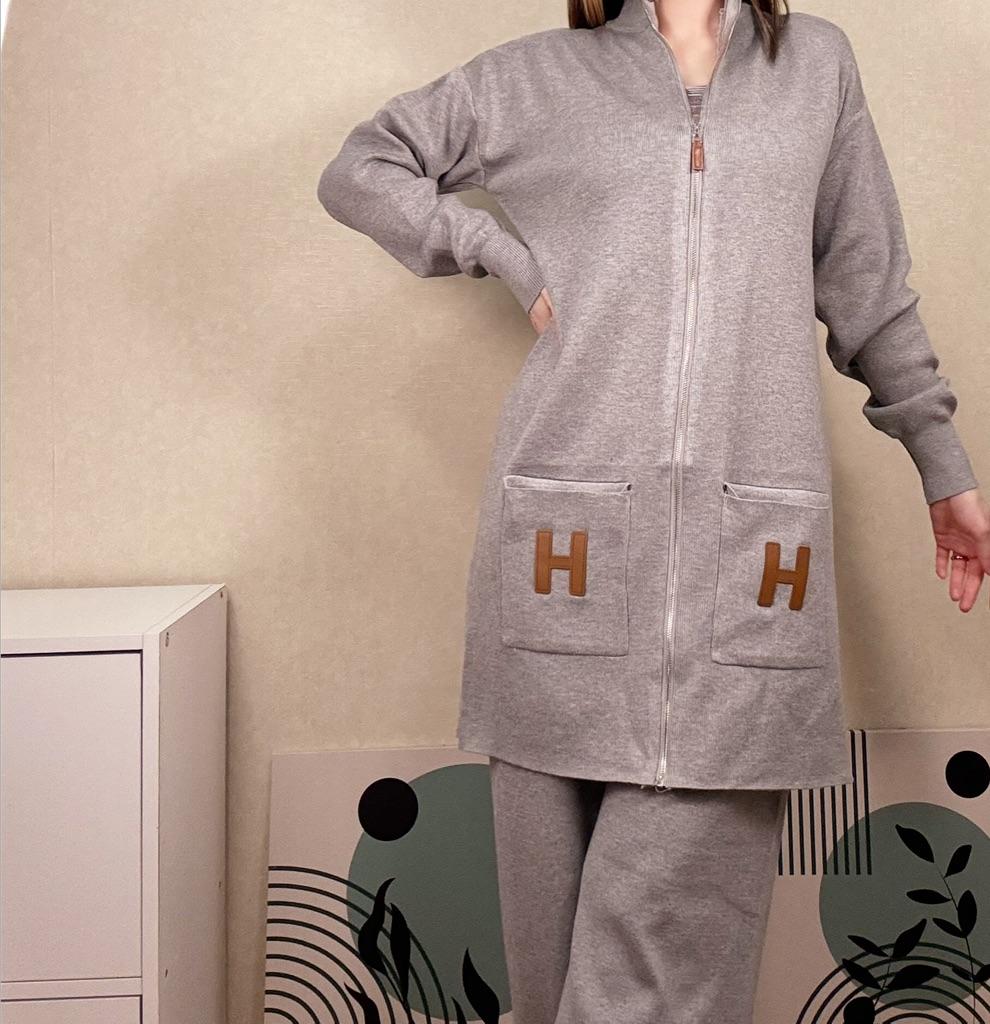 Knitted suit for women Extra warm knitted suit, shirt and trousers. The pants with a wide elastic waistband are flared, the shirt with a round neck and long sleeves has pockets and the letter H Suitable for the autumn-winter season. Available in colors black, khaki, orange, gray, dark brown, apricot The suit is of particularly high quality and gives a feeling of luxury Highly recommended to buy! The product arrived to me with fast and secure delivery 📦