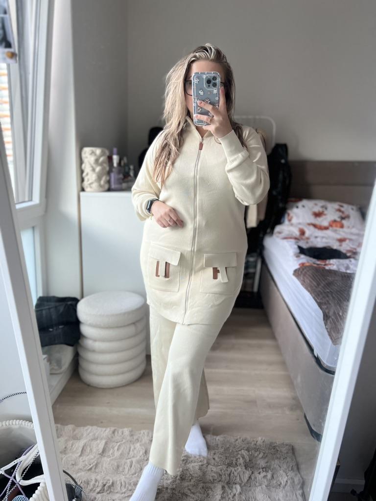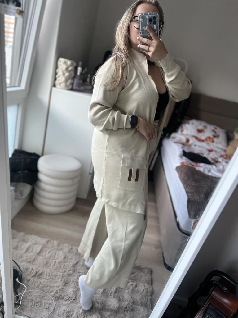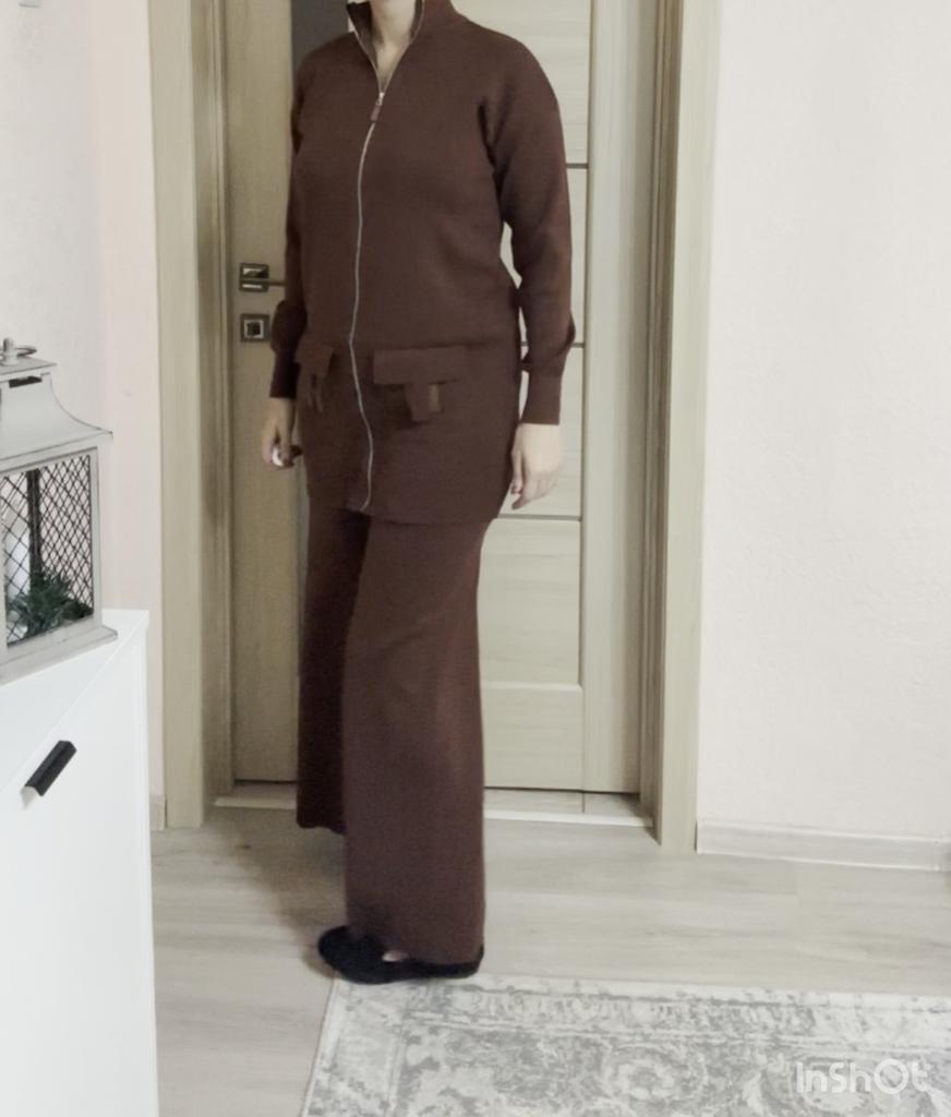 🛍️ Casual Knitted Suit for Women Oversized🛍️ ✨This suit looks so beautiful and has a special style and it's comfortable on the body and I loved them very much!🤩 ✨The shirt is large and wide with an opening zipper, long sleeves with a soft and flexible cuff. The pants have a comfortable and soft elastic waistband, and they widen. ✨One size can be ordered ✨Suitable for the season: Autumn, Spring, Winter ✨I chose the color black, I received them exactly in the size and color I wanted. ✨Available in color: khaki, apricot, black, dark brown, grey, orange. ✨The product arrived with fast and protected delivery. Was the review helpful to you? Like and follow me for more reviews.