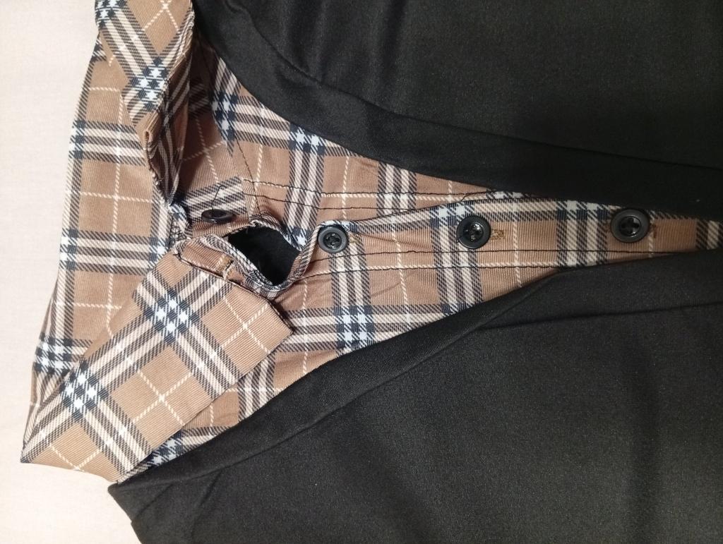 Careless sewing. The left cuff has a plaid turn-back sewn on, the right one doesn't have it at all. Had to unpick it on the left.