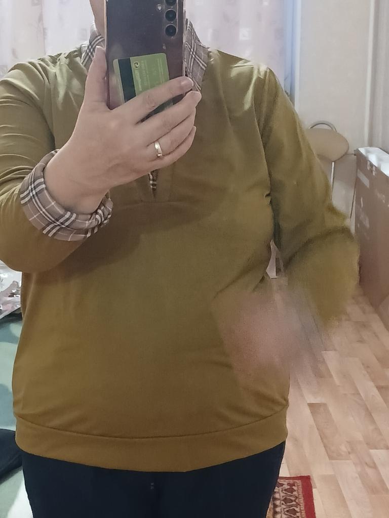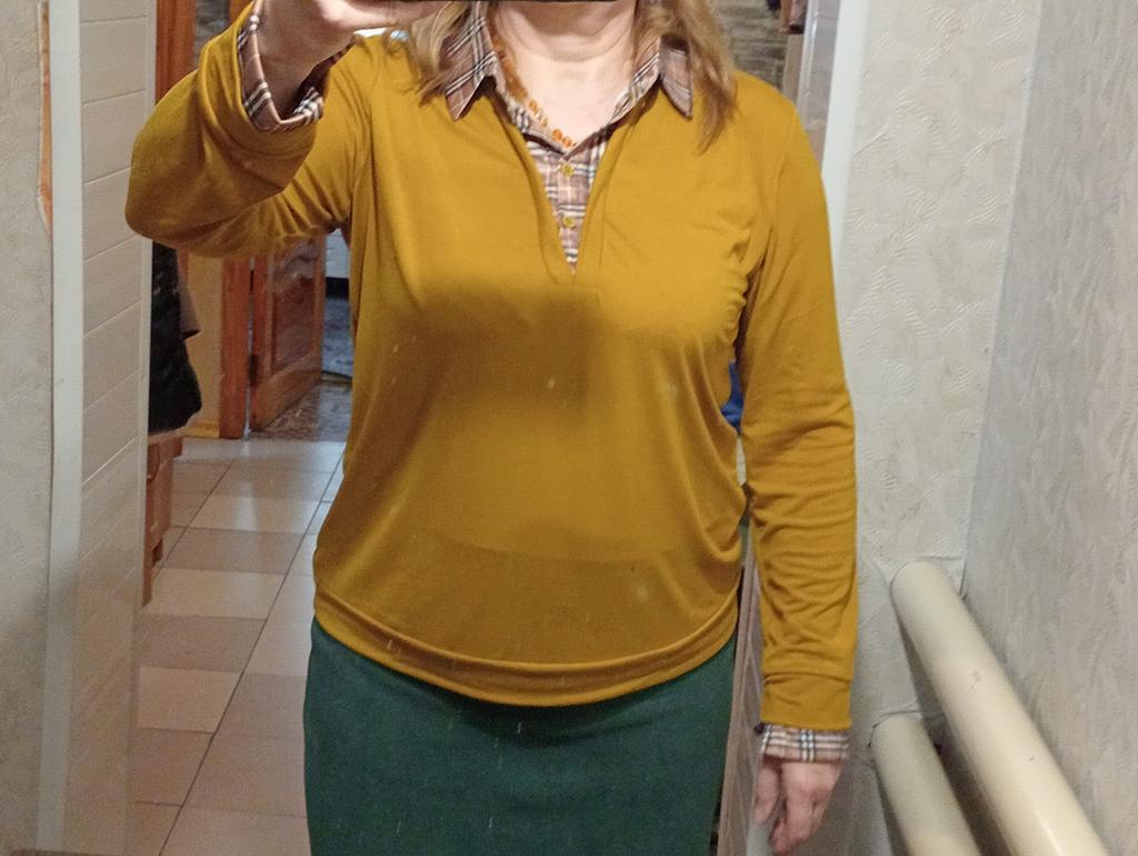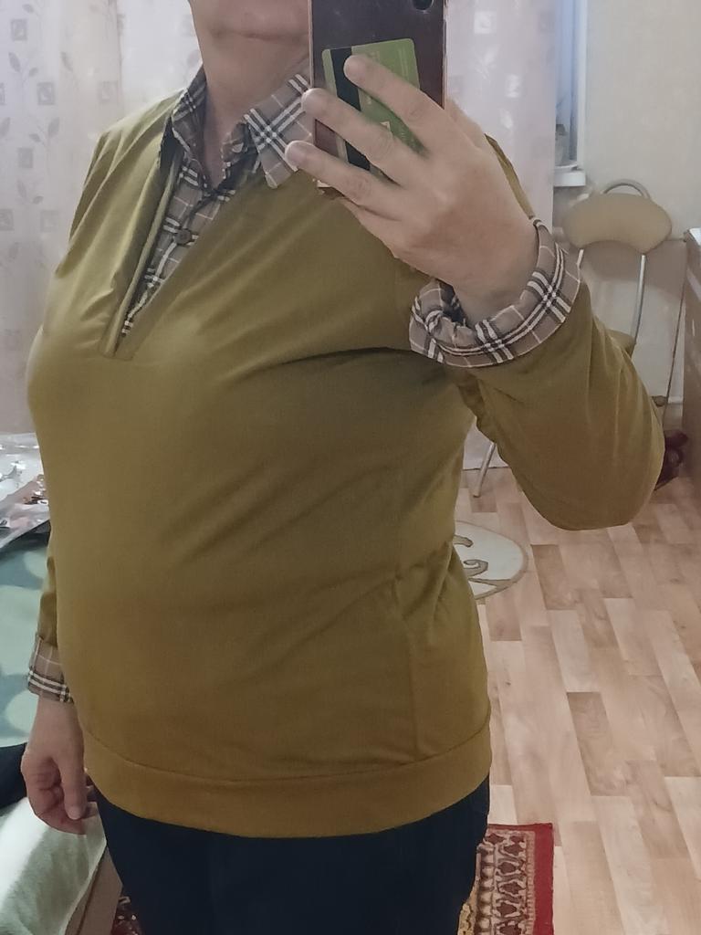 I didn't like the blouse, it's made as if from thick polyethylene, the seam along the shoulders and the circumference of the sleeve is bad, stretched, and all the threads are on top, it looks very unaesthetic, I bought it in vain.
