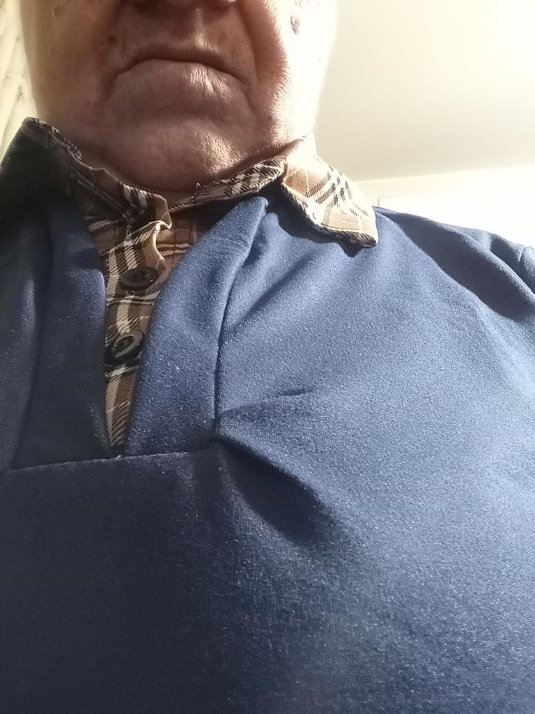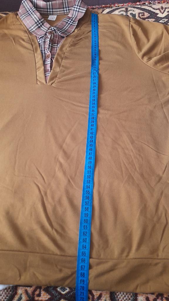 Size XXXL fits me, but the item 5 is larger than XXXL. The collar is sewn incorrectly on the shoulder on the right.! The fabric for such a jumper is very thin. I didn't bother with a return, it will do for cleaning.