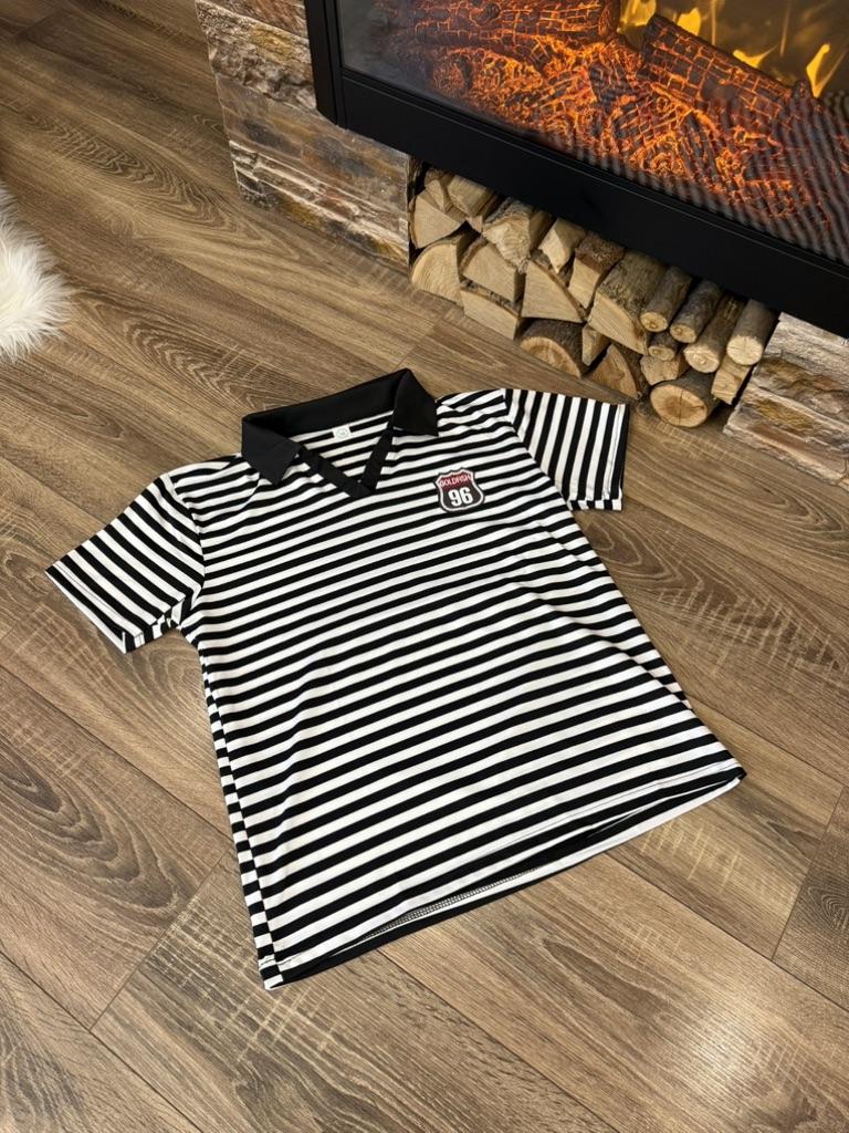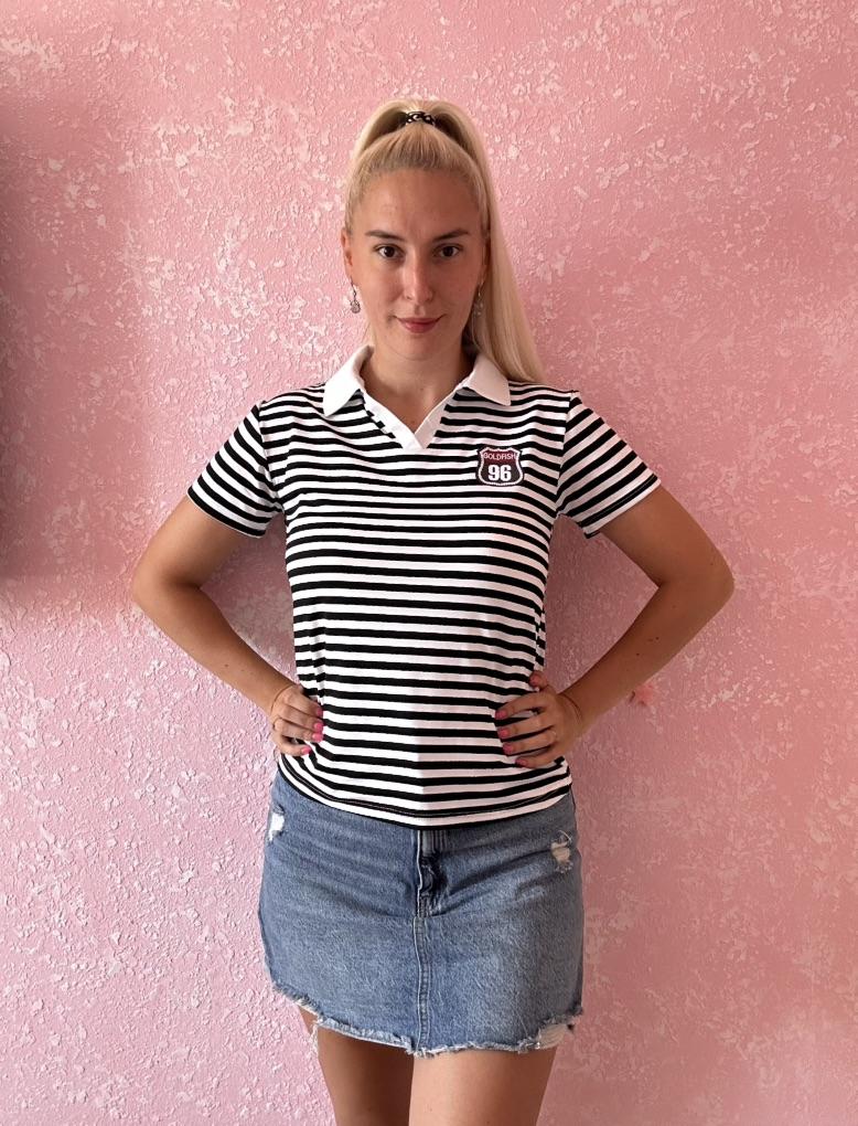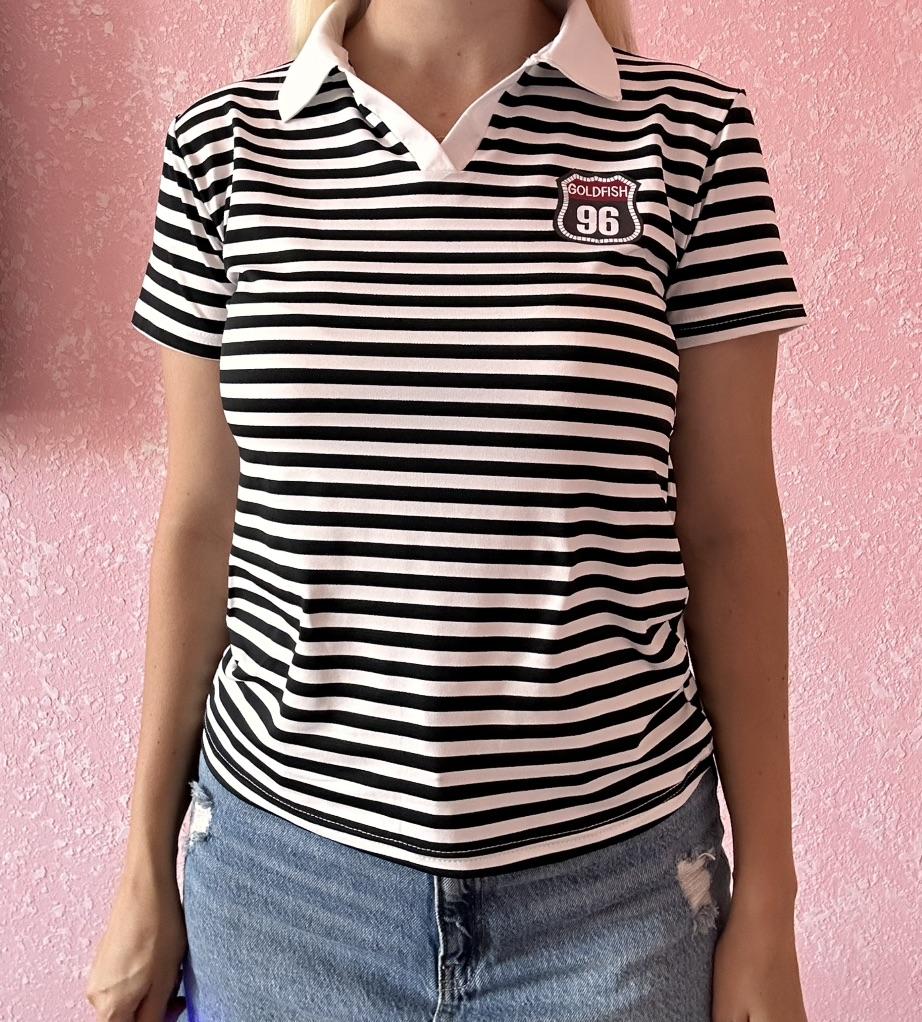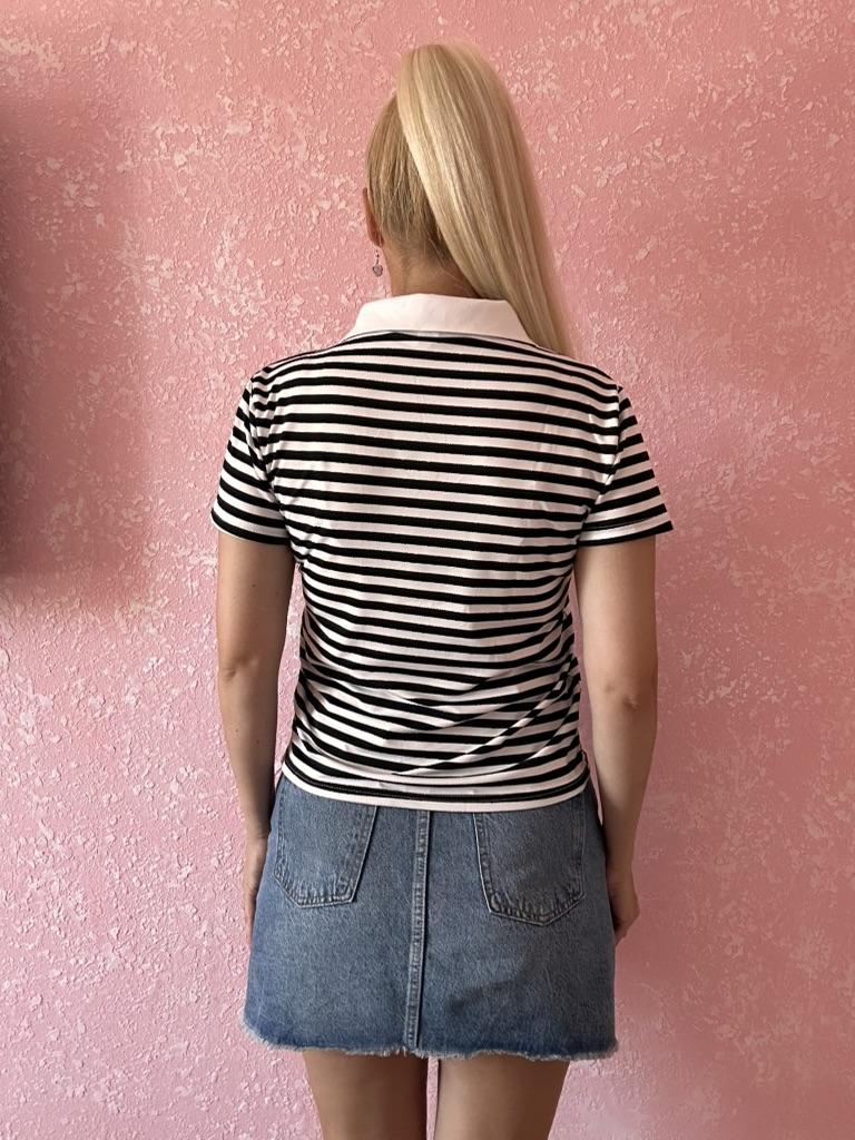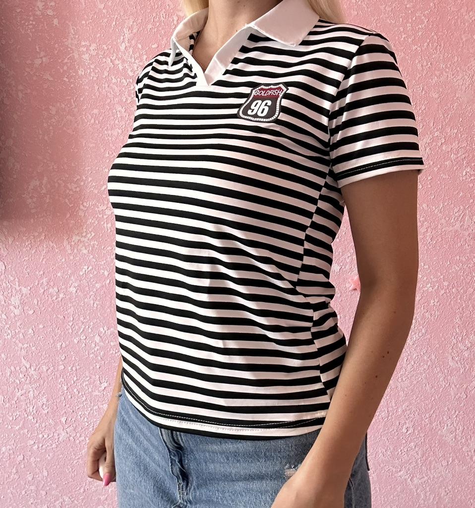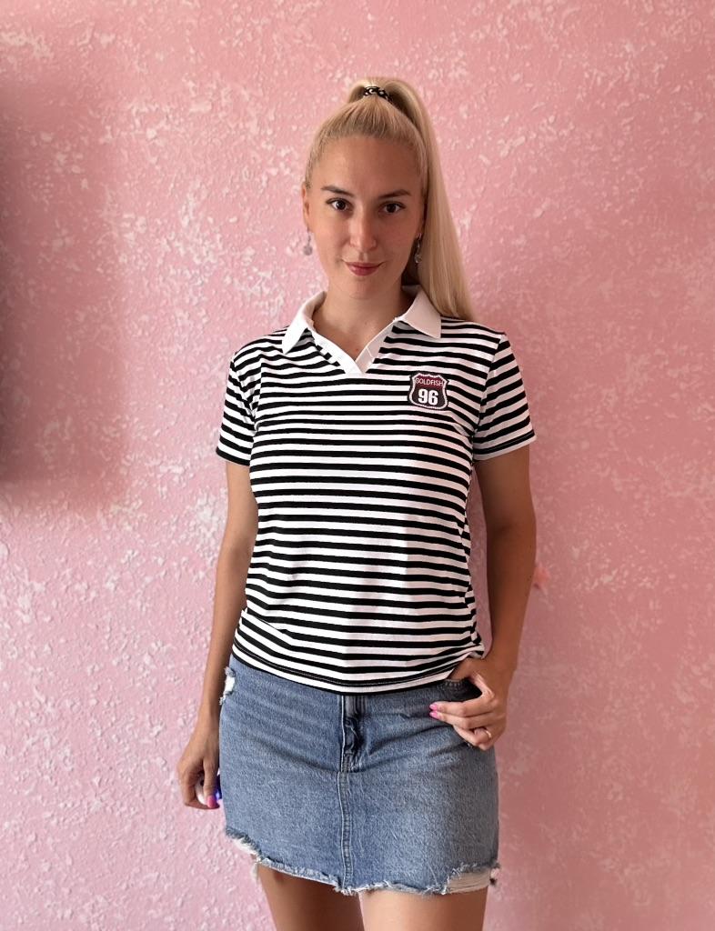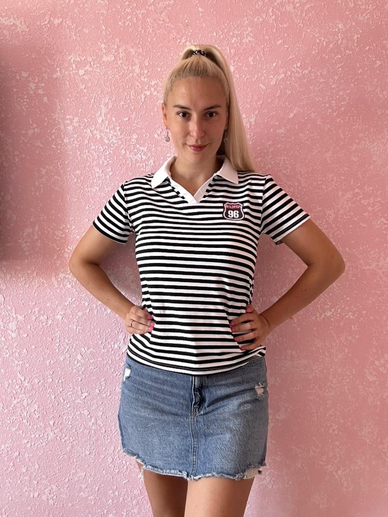 YYFS Women's Fashion Casual Summer Spring Stripe Print Short Sleeve POLO Neck Blouses & Shirts
