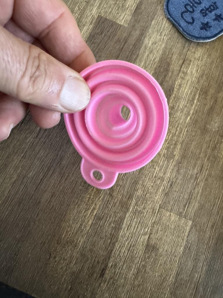 Good funnel, compact, rolls up easily and fits different containers! Thank you all!