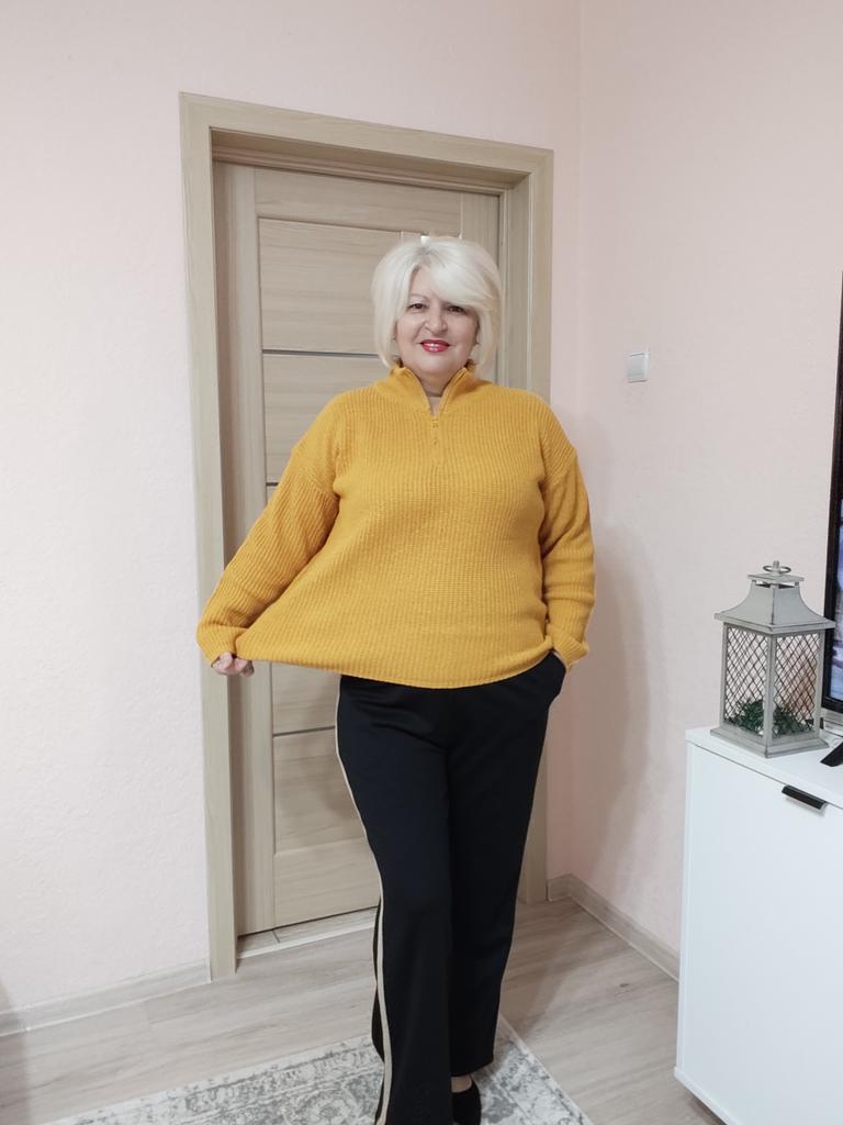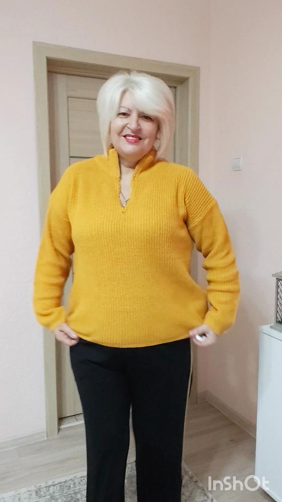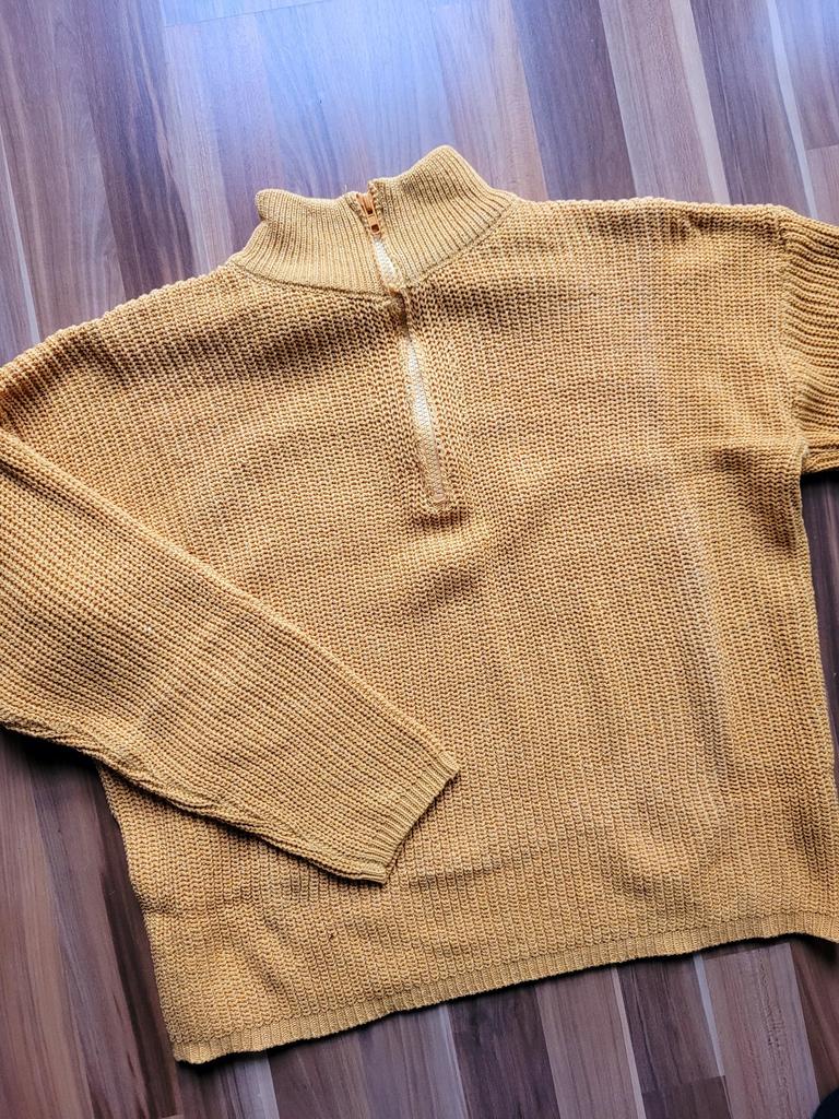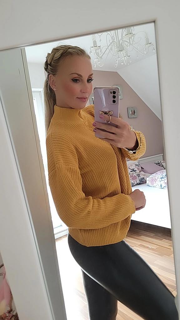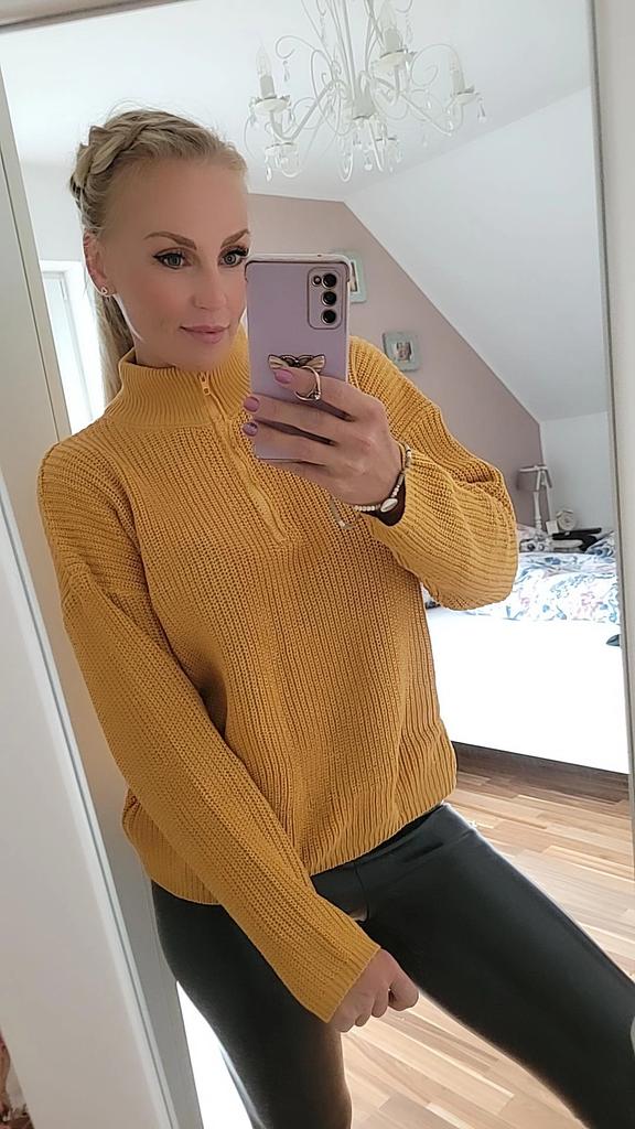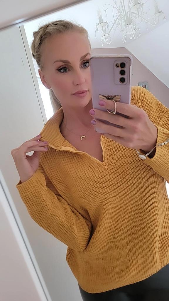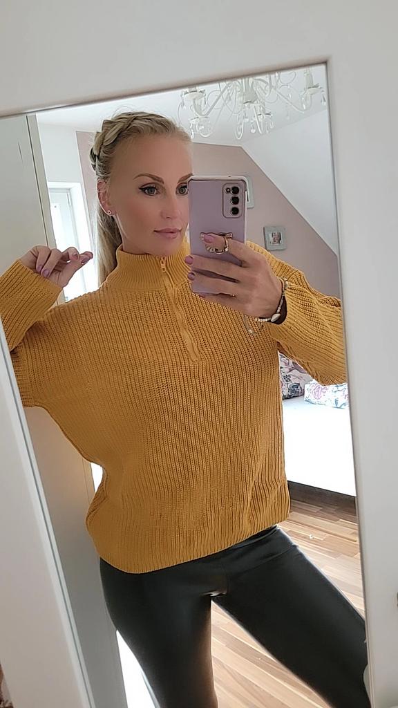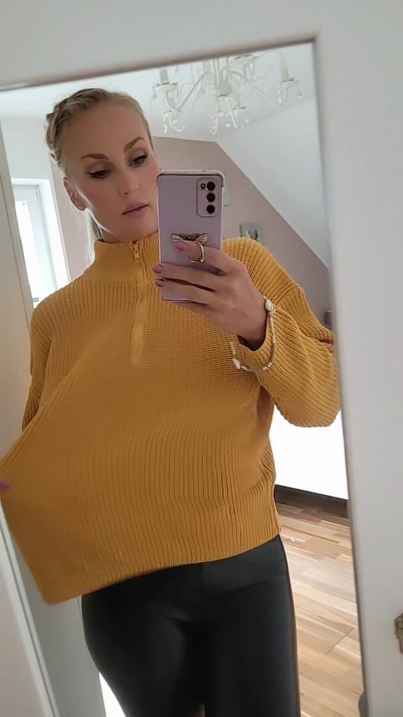 * oversize knit sweater with stand-up collar * ⭐⭐⭐ 💥𝗟𝗶𝗲𝗳𝗲𝗿𝘇𝗲𝗶𝘁 23 Roofs 💥𝗟𝗶𝗲𝗳𝗲𝗿𝘂𝗺𝗳𝗮𝗻𝗴 Included in the delivery is 1 sweater in the corresponding color and size. It is available in several different colors in sizes S to XXXL. I ordered the sweater in APRICOT in L. However, it was delivered in YELLOW !!!! I ordered it deliberately a bit larger because I wanted to wear it oversized. I wear dress size 36 to 38. I weigh 66 kg distributed over 172 cm. Cup size 75D. The sweater fits me very well as you can see in the video, because it is somewhat elastic. 💥𝗤𝘂𝗮𝗹𝗶𝘁ä𝘁 The sweater is elastic, but still opaque. Unfortunately, the quality of the sweater did not convince me: There are some loose threads on the sweater and it also smells unpleasantly of chemicals.. Furthermore, I don't find the material very comfortable on the skin. It's a shame that I was delivered the wrong color. The sweater has a zipper and stand-up collar at the front, and the zipper can be opened regularly.. For material composition : 95% Polyester 5% SPANDEX 💥𝗙𝗮𝘇𝗶𝘁 Pullover with stand-up collar and zipper, which was unfortunately delivered to me in the wrong color and also smells very strongly of chemicals and scratches unpleasantly on the skin. I would not recommend him, as many threads stick out and he does not look very high-quality. Nevertheless, the sweater fits true to size. ⭐⭐⭐ If you liked my review and it helped with a purchase decision, I would be happy if you followed me here, because many more useful reviews will follow in the near future. 😉