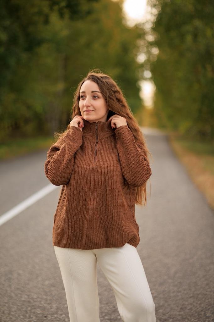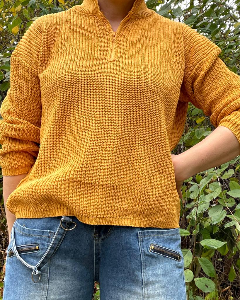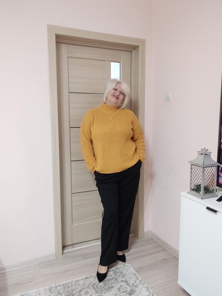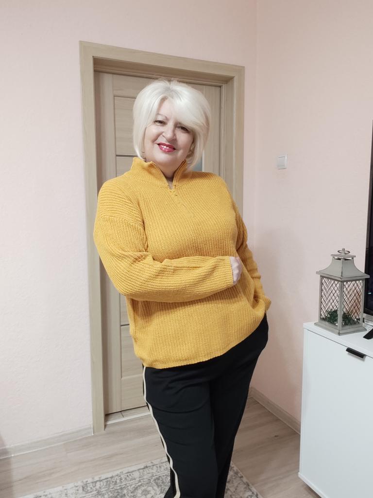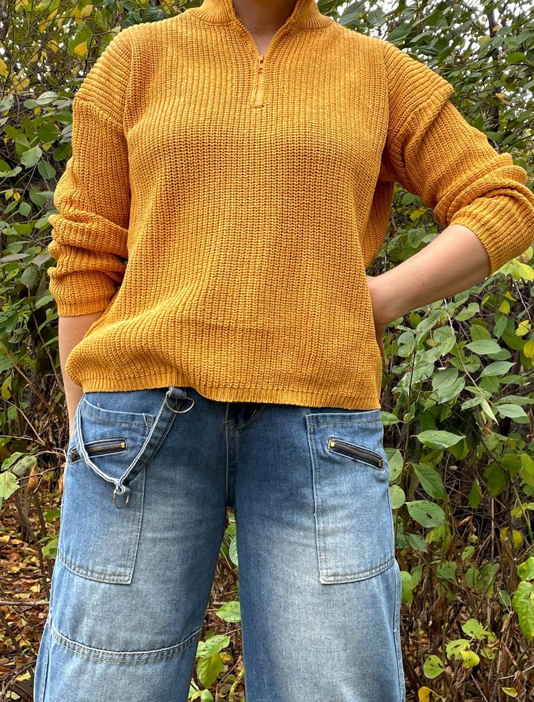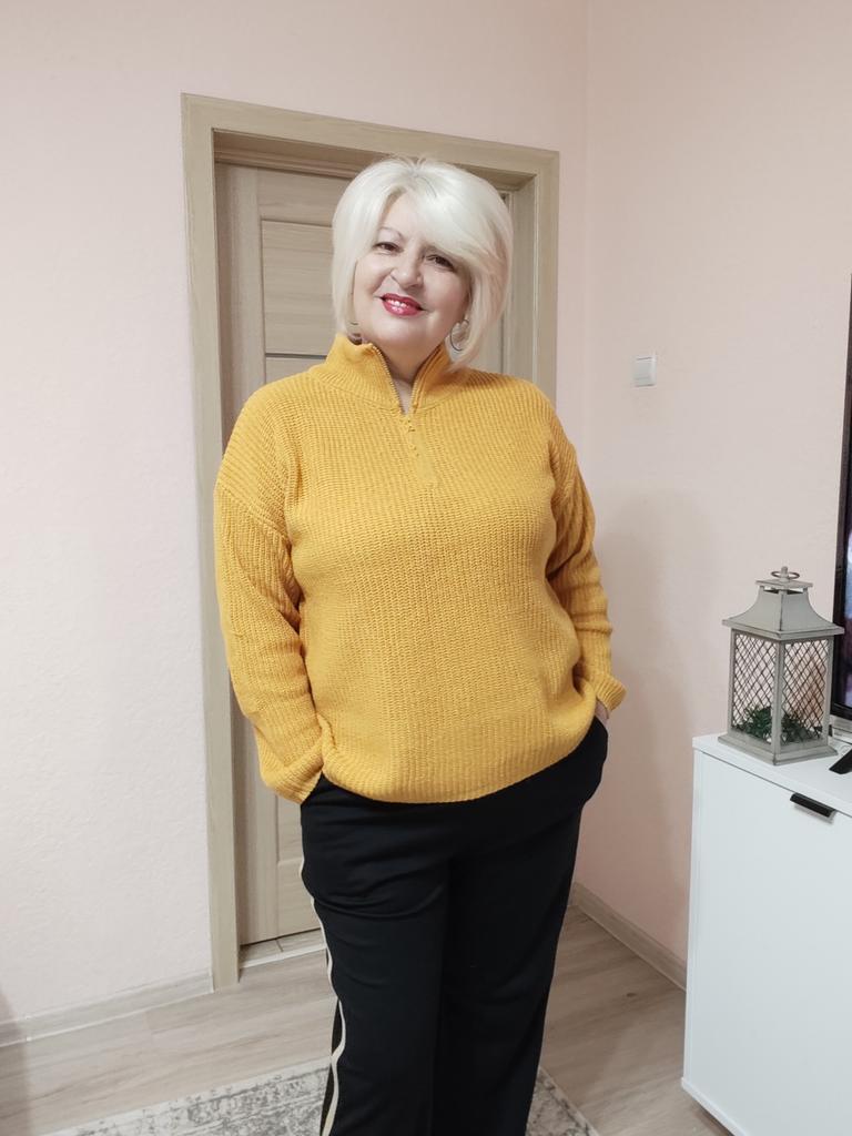 * oversize knit sweater with stand-up collar * ⭐⭐⭐ 💥𝗟𝗶𝗲𝗳𝗲𝗿𝘇𝗲𝗶𝘁 23 Roofs 💥𝗟𝗶𝗲𝗳𝗲𝗿𝘂𝗺𝗳𝗮𝗻𝗴 Included in the delivery is 1 sweater in the corresponding color and size. It is available in several different colors in sizes S to XXXL. I ordered the sweater in APRICOT in L. However, it was delivered in YELLOW !!!! I ordered it deliberately a bit larger because I wanted to wear it oversized. I wear dress size 36 to 38. I weigh 66 kg distributed over 172 cm. Cup size 75D. The sweater fits me very well as you can see in the video, because it is somewhat elastic. 💥𝗤𝘂𝗮𝗹𝗶𝘁ä𝘁 The sweater is elastic, but still opaque. Unfortunately, the quality of the sweater did not convince me: There are some loose threads on the sweater and it also smells unpleasantly of chemicals.. Furthermore, I don't find the material very comfortable on the skin. It's a shame that I was delivered the wrong color. The sweater has a zipper and stand-up collar at the front, and the zipper can be opened regularly.. For material composition : 95% Polyester 5% SPANDEX 💥𝗙𝗮𝘇𝗶𝘁 Pullover with stand-up collar and zipper, which was unfortunately delivered to me in the wrong color and also smells very strongly of chemicals and scratches unpleasantly on the skin. I would not recommend him, as many threads stick out and he does not look very high-quality. Nevertheless, the sweater fits true to size. ⭐⭐⭐ If you liked my review and it helped with a purchase decision, I would be happy if you followed me here, because many more useful reviews will follow in the near future. 😉