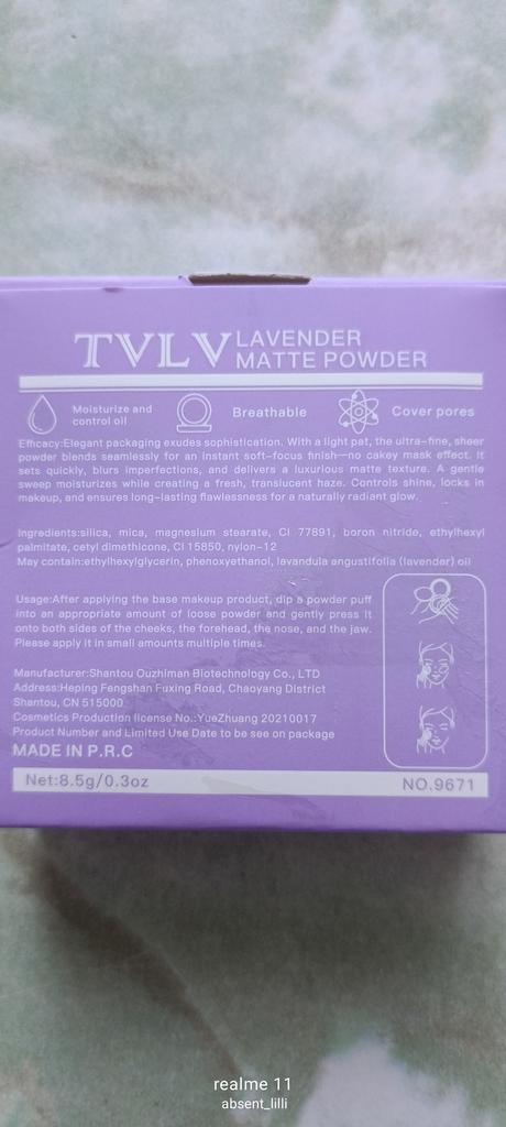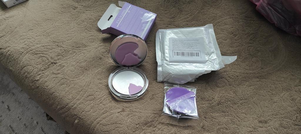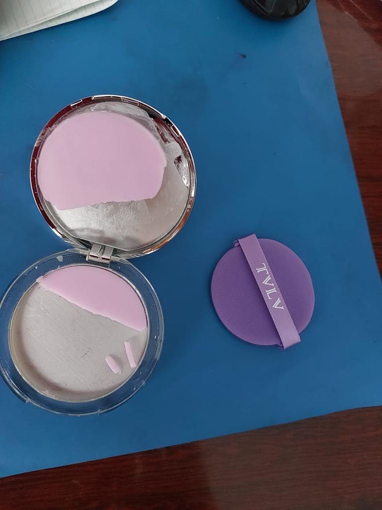 The powder really tones, without tone, like a paste that turns into a powder sensation on the face, super, thank you, and also my favorite color 💜