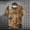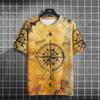 Vintage Men's T-shirt Summer American Shirt Tops Compass Printed Short-sleeve Tees Loose Daily Men Clothing Casual Streetwear