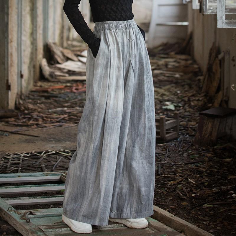 Johnature Women Vintage Wide Leg Pants Elastic Waist Tie-dye Trousers Autumn Loose Belt Long Pants