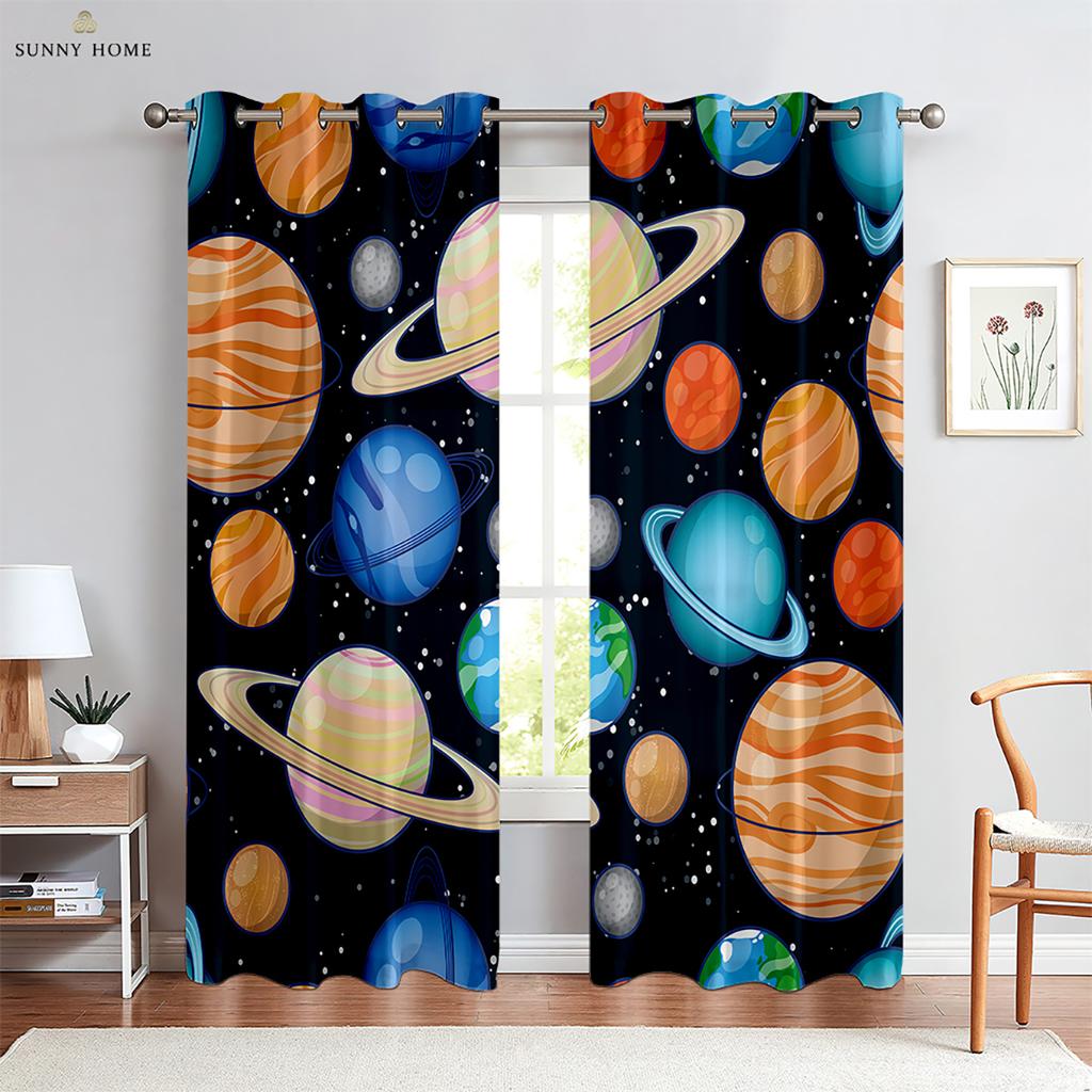 Cartoon Starry Sky Planet Curtains Children's Room Living Room Study Window Decoration Curtains Can Be Customized 2 Pieces