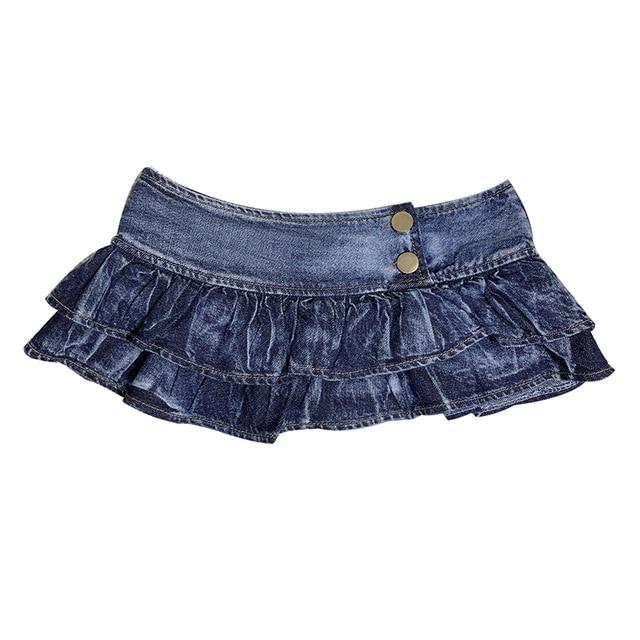 Pleated Ruffles Super Mini Low Waist Denim Skirt Women Skirts