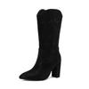 Women's High-heeled Short Boots Autumn and Winter New Simple Temperament Pointed Thick Heel Large Size Boots