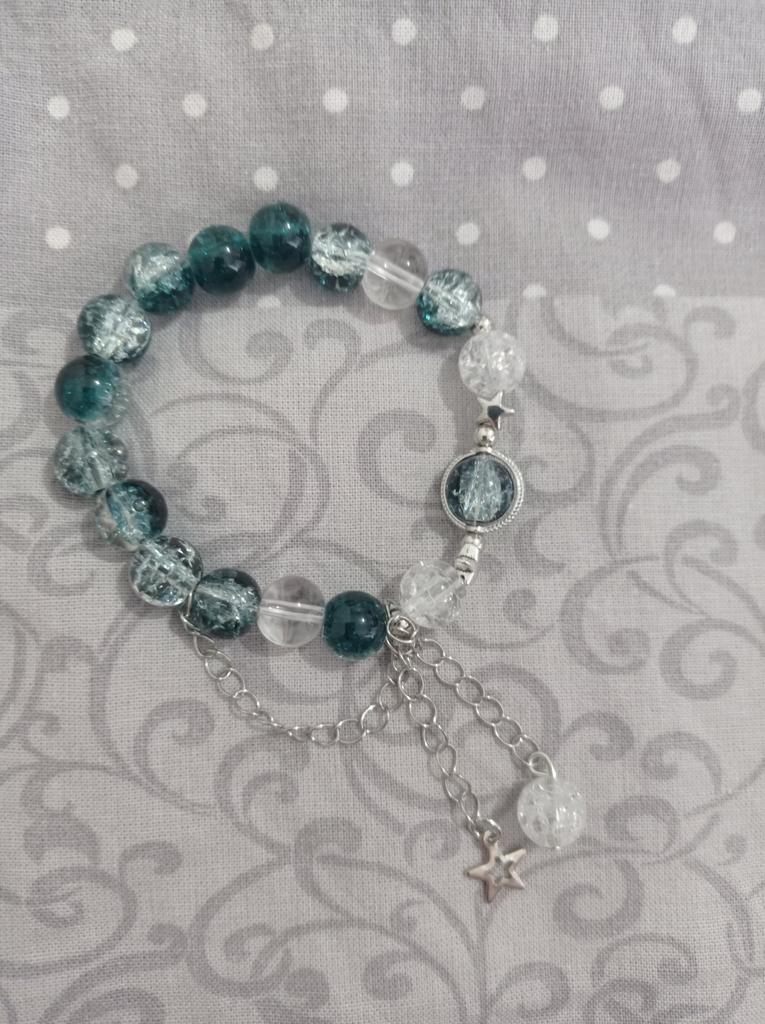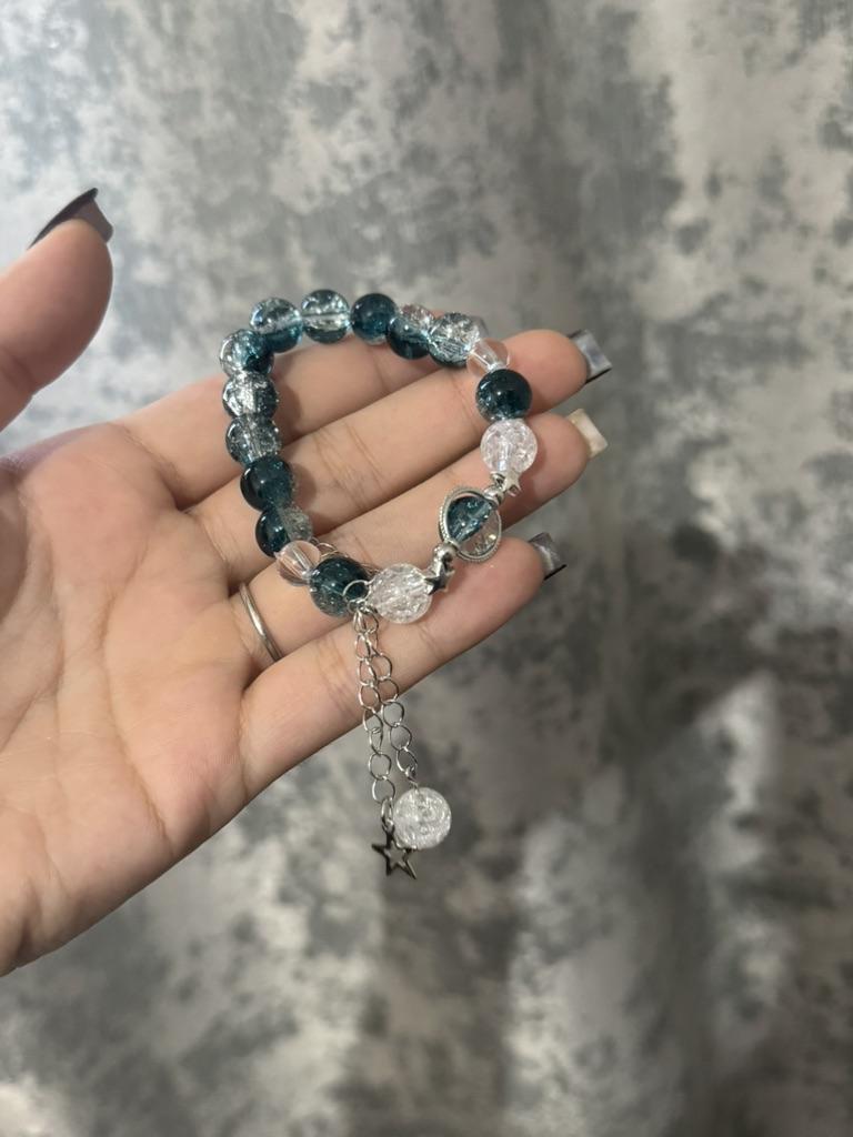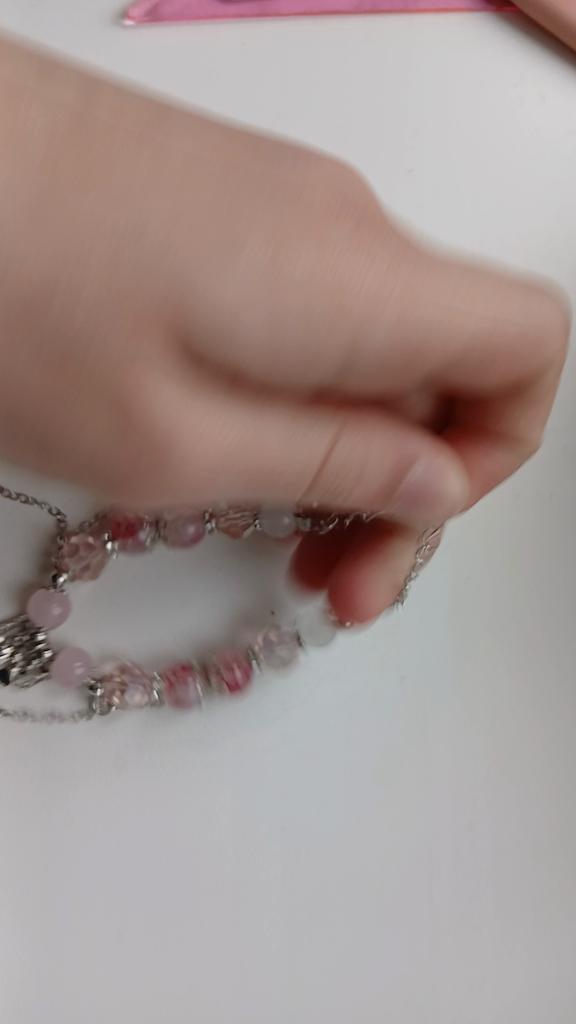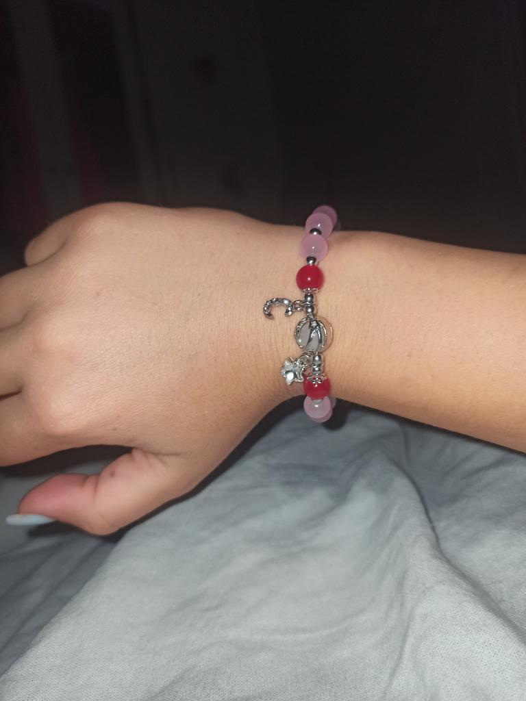 The bracelet is just terrible, the colors are not at all like in the photo, the bright pink beads are actually just red, the crescent moon is as small as a star, it doesn't look very good at all. It itself is not shiny.