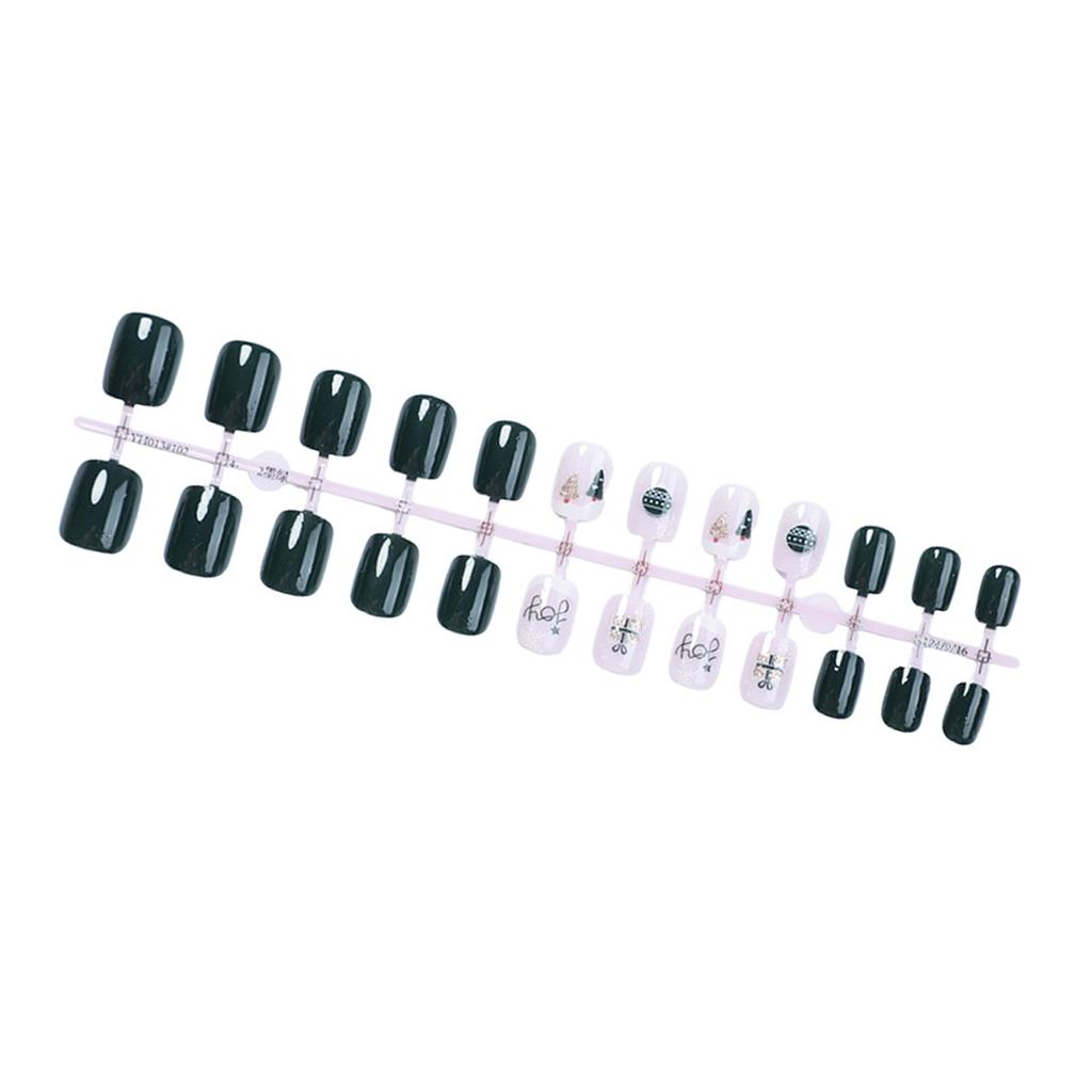 Christmas Press On Nails False Nails with Christmas Tree Designs Full Cover Stick On Nails Short Square Artificial Nails