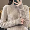 Cable Knit Mock Neck Sweater, Elegant Comfy Basic Long Sleeve Sweater for Fall & Winter, Women's Clothing