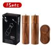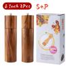 Cylindrical Wooden Salt and Pepper Grinder Set,Refillable and Matching Spice Mill,Wood Tray,Tall 8Inch,Manual Pepper Shakers Set
