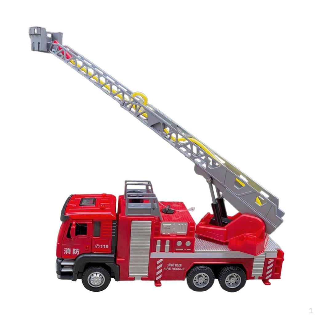 - 【Realistic Details】: This 1/50 scale fire truck toy with realistic details, equipped with a real working ladder that raises and pivots, opening door, clearly visible cab, friction powered, bringing children a fire truck experience.